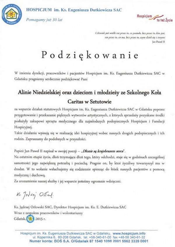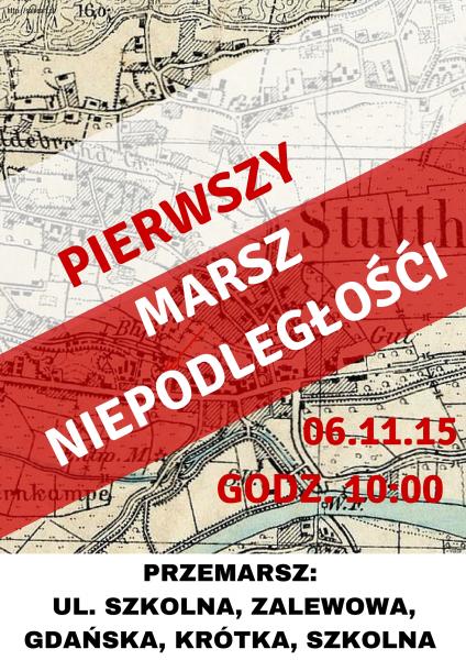 Dnia 6 listopada w ramach obchodów Dnia Niepodległości, uczniowie naszej szkoły, nauczyciele, zaproszeni goście i rodzice przeszli ulicami Sztutowa w I Marszu Niepodległości. Uroczystości rozpoczęte zostały odśpiewaniem hymnu państwowego przed budynkiem szkoły.