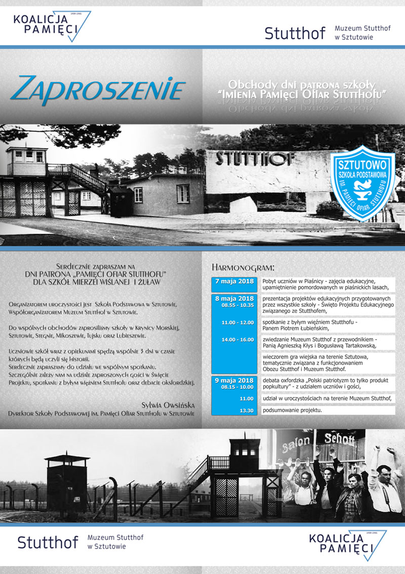 Od 7 do 9 maja szkoła w Sztutowie we współpracy z Muzeum Stutthof zorganizowała obchody Dni Patrona „Pamięci Ofiar Stutthofu”.