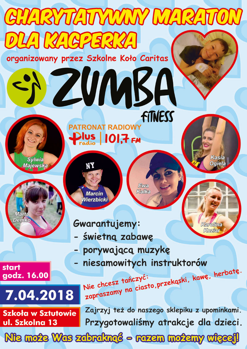 W sobotę 7 kwietnia od 16.00 do 19.00 w szkole w Sztutowie odbędzie się festyn charytatywny oraz maraton zumby.