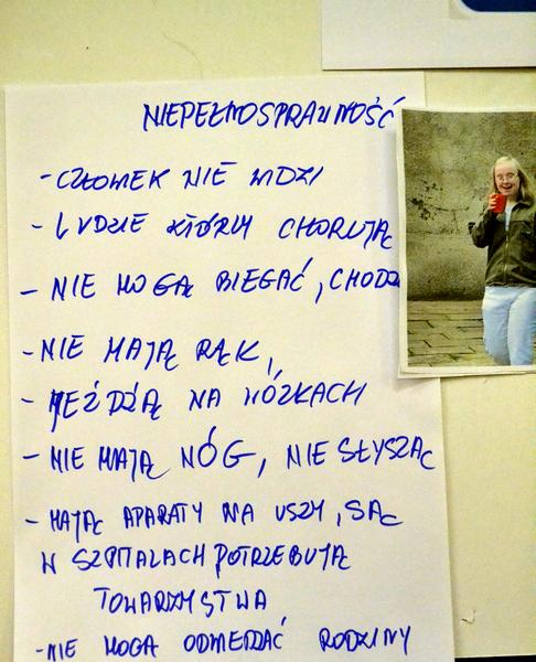 Z okazji Dnia Godności Niepełnosprawnych nauczyciele Specjalnego Ośrodka Szkolno-Wychowawczego i Poradni Psychologiczno-Pedagogicznej w Nowym Dworze Gdańskim zorganizowali dla klasy II a warsztaty o niepełnosprawności.