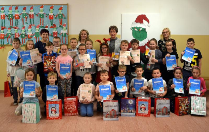 Rozdaliśmy nagrody naszym najmłodszym uczniom za udział w dwóch szkolnych konkursach: literackim „Jesienny wiersz” oraz graficznym na kartkę świąteczną 2018.