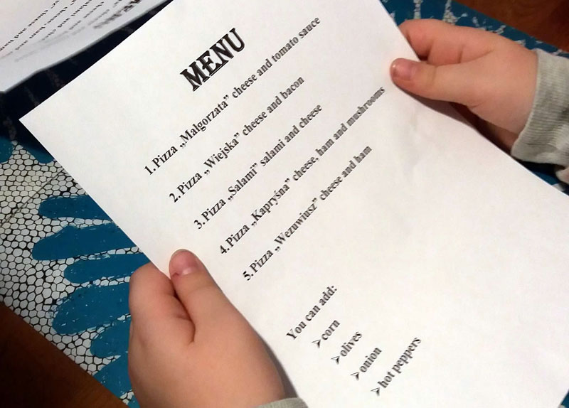 Niecodzienna lekcja języka angielskiego odbyła się w sztutowskiej Sztutozzerii.Uczestniczyły w niej klasa Va i Vc, które to korzystając z menu w języku angielskim miały za zadanie przygotować i upiec pizzę.