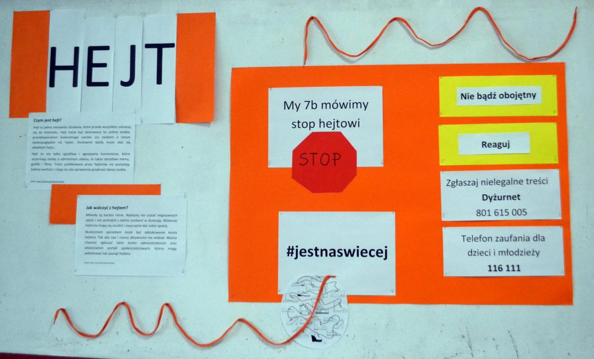 - Zwycięzcom konkursu gazetkowego nt. hejtu, polegającego na przygotowaniu gazetki klasowej wyjaśniającej czym jest hejt i jak można się mu skutecznie przeciwstawić,