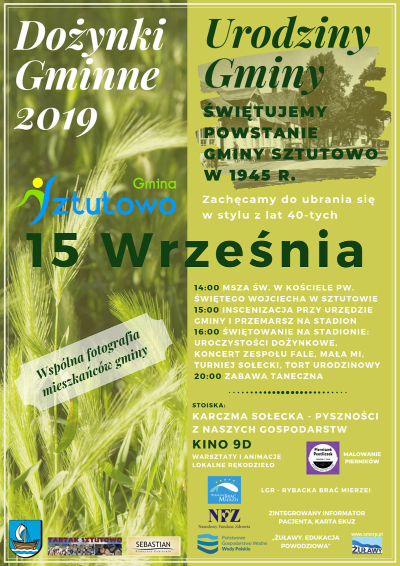 15 września nauczyciele oraz uczniowie szkoły wzięli udział w obchodach urodzin gminy. Z tej okazji przygotowali m.in. okolicznościowe scenki, których scenariusz opracowano na podstawie dokumentów źródłowych. Mogliśmy więc poznać pierwszego Wójta Gminy Sztutowo – Juliana Góreckiego oraz pierwszych sołtysów gromad: Obozy (Sztutowo), Łaszka, Graniczna Wieś, Dublewo, Rybacki Kąt, Szumnice (Skowronki).