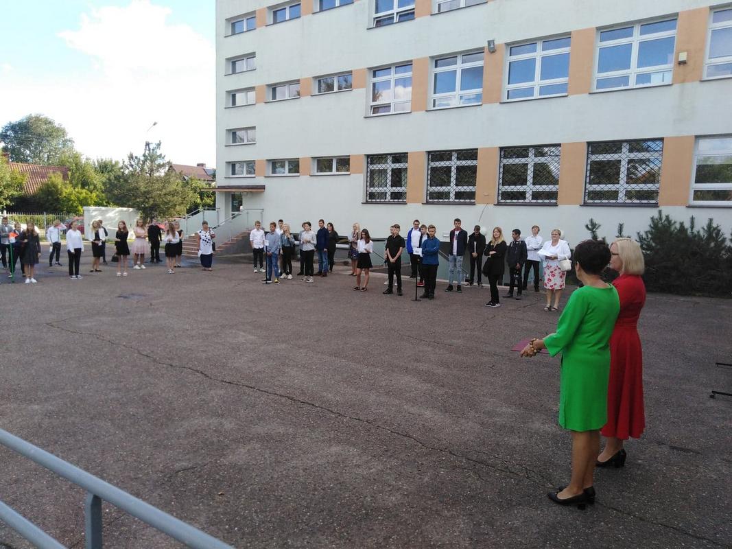 Nowy rok szkolny rozpoczęliśmy trochę inaczej niż dotychczas. Uroczystości były trzy – oddzielnie dla różnych grup wiekowych. Wszystkie odbywały się na świeżym powietrzu. Zaprosiliśmy niewielu gości – Roberta Zielińskiego – Wójta Gminy Sztutowo oraz Marcina Owsińskiego – Przewodniczącego Rady Gminy.
