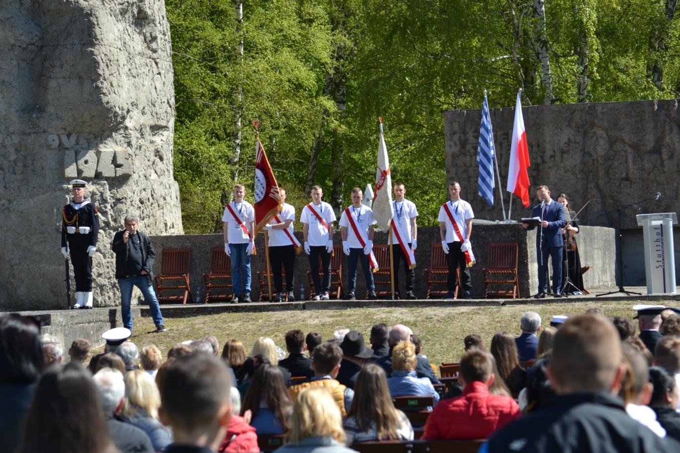 W 77. rocznicę uwolnienia ostatnich więźniów KL Stutthof i zakończenia II wojny światowej cała społeczność szkoły z pocztem sztandarowym przeszła do Muzeum Stutthof.