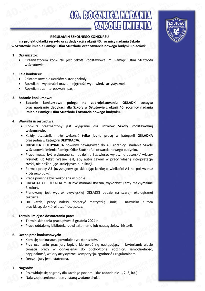 Konkurs przeznaczony jest wyłącznie dla uczniów Szkoły Podstawowej w Sztutowie.