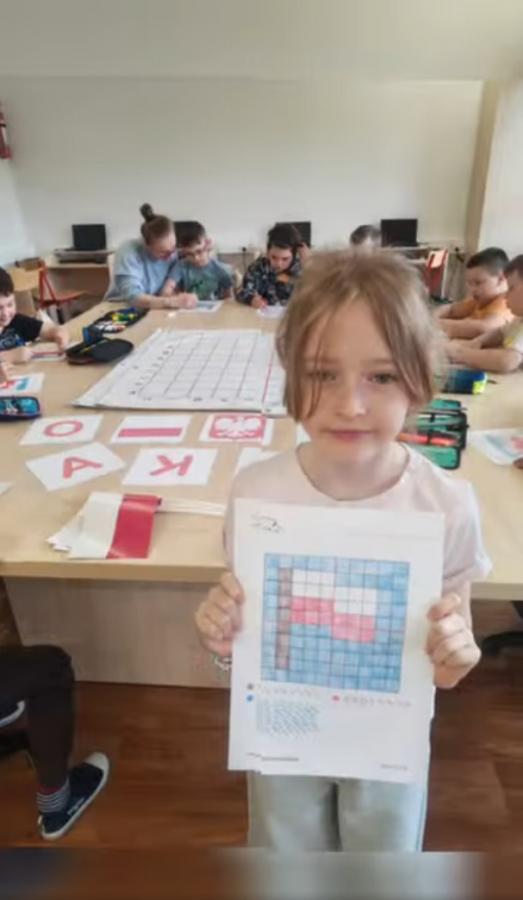 Klasy pierwsze i drugie kodowały obrazki przedstawiające flagę i godło Polski, a trzecioklasiści programowali i odkodowywali datę uchwalenia Konstytucji 3 Maja.