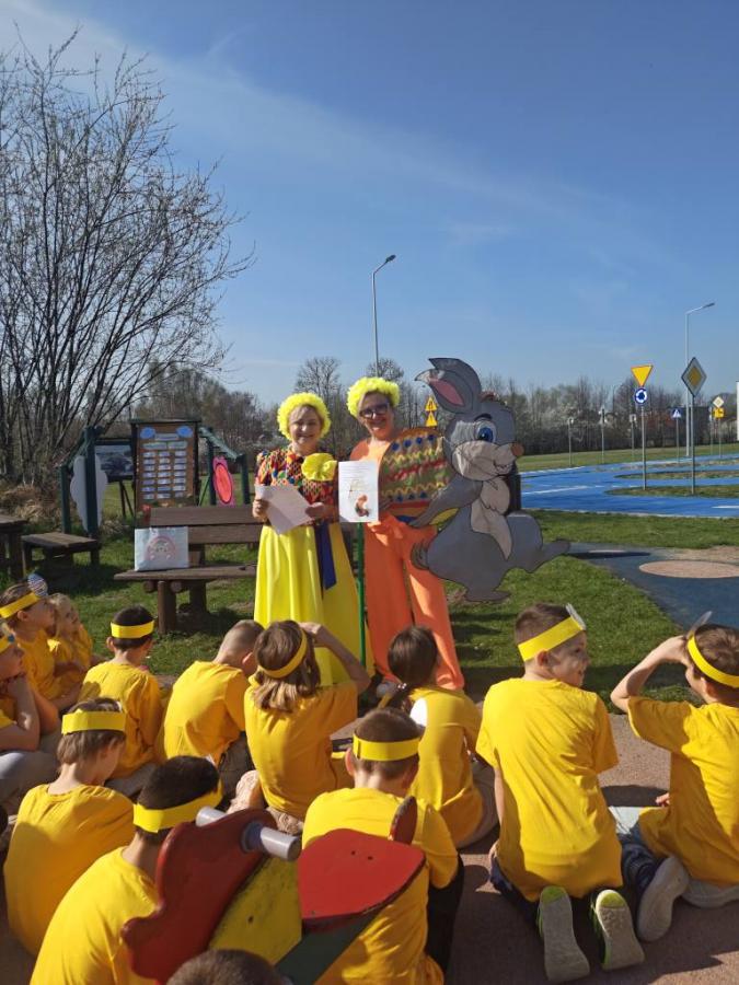 Zajączek, który pozostawił po sobie mnóstwo śladów, przygotował dla dzieci stacje zadaniowe, które pozwoliły nie tylko świetnie się bawić, ale też sprawdzić wiedzę i umiejętności.