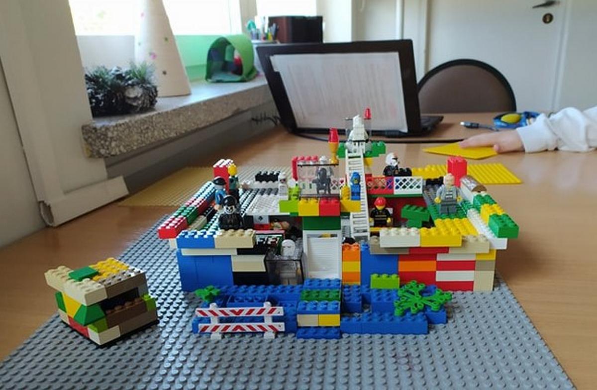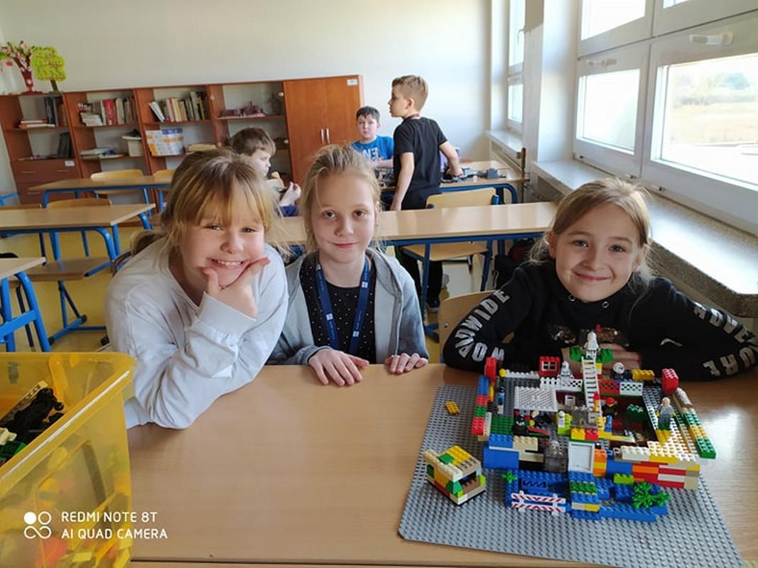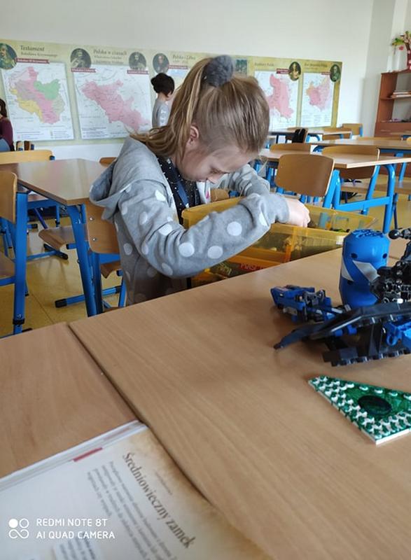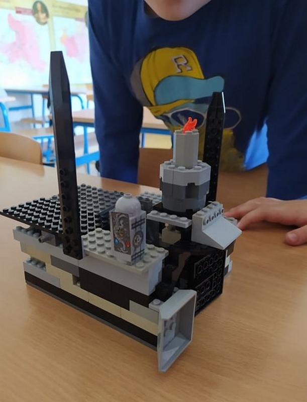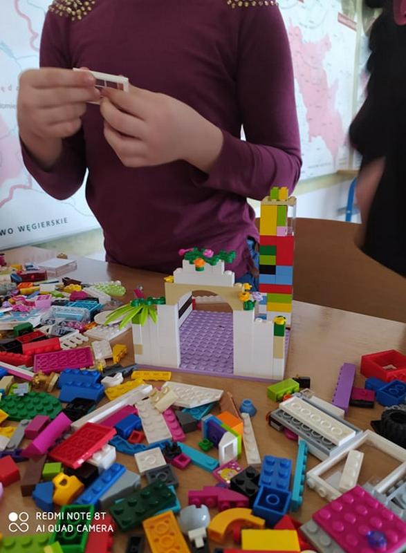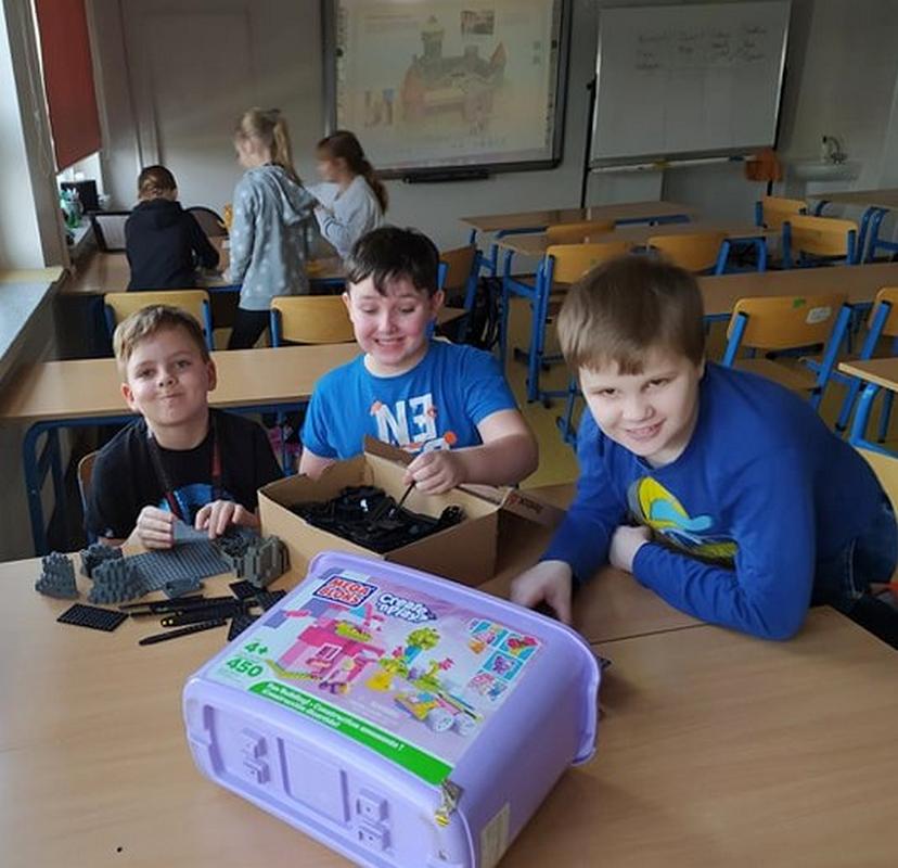 Podczas lekcji historii uczniowie klasy 4a budowali średniowieczne zamki przy pomocy klocków Lego.
