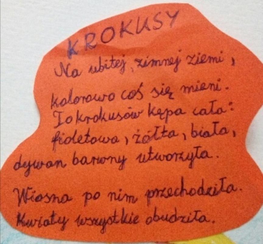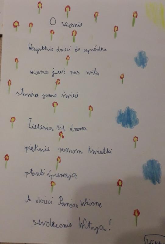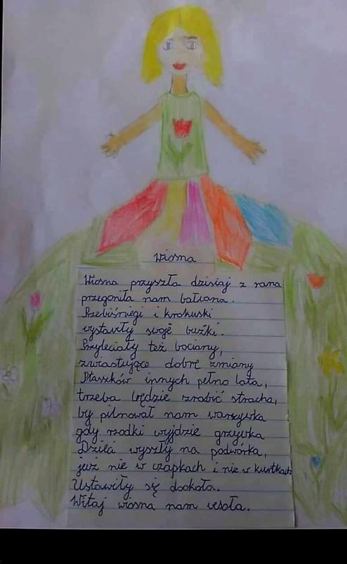 Na zakończenie bloku wykonali prace plastyczne „Już wiosna” i wykazali się talentami poetyckimi i aktorskimi.