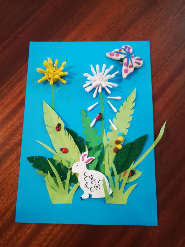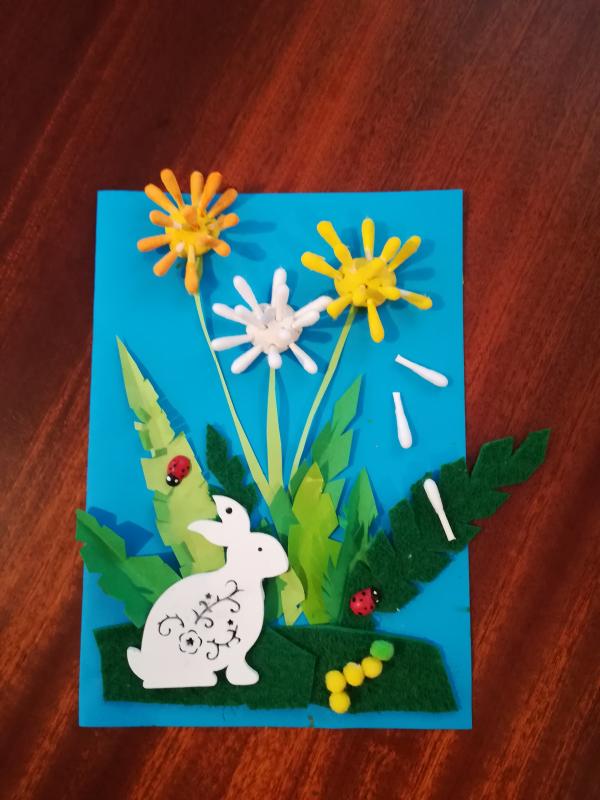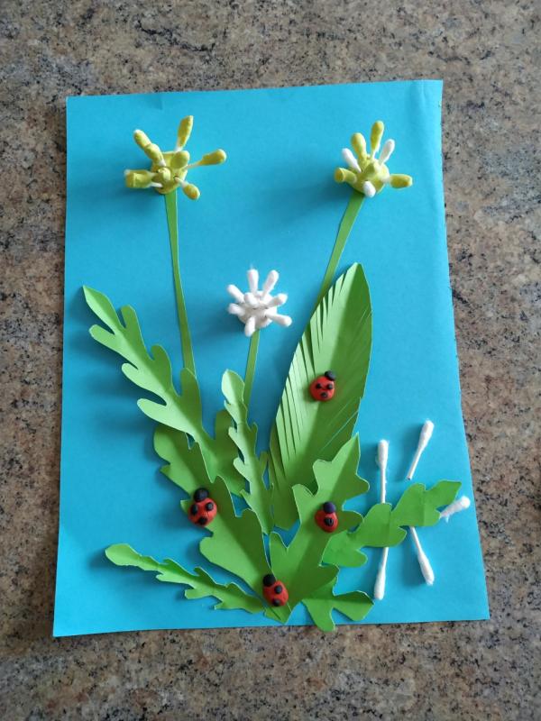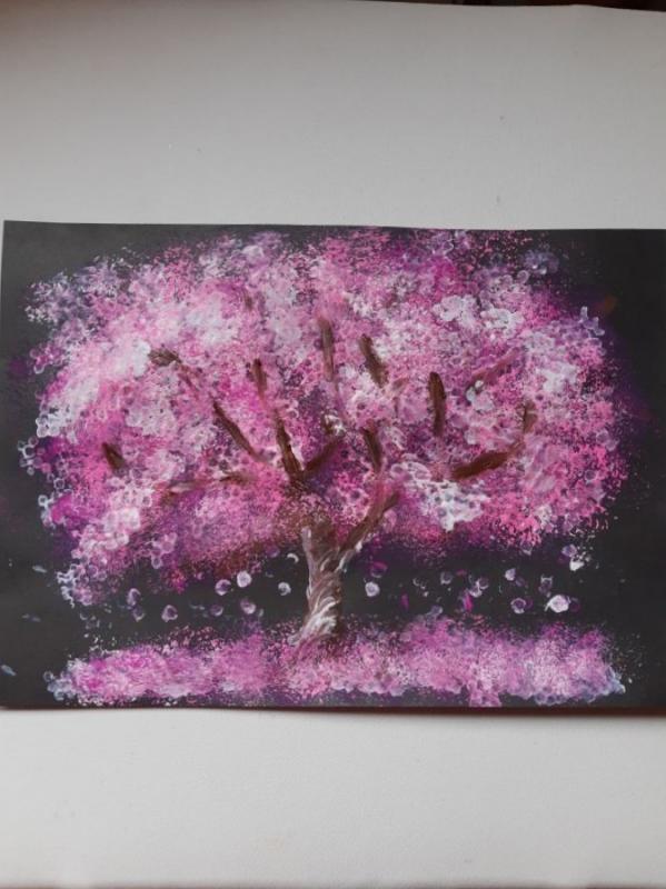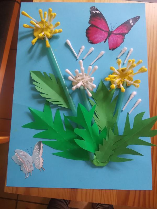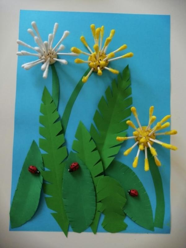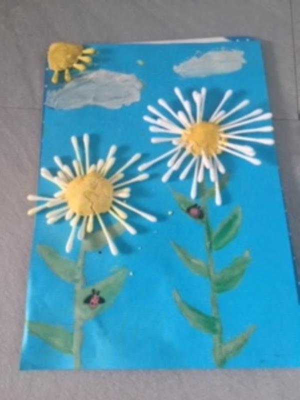 Dzieci z klasy 2a wykonały piękne prace przedstawiające wiosnę w ogrodzie dmuchawce i kwitnące drzewa.