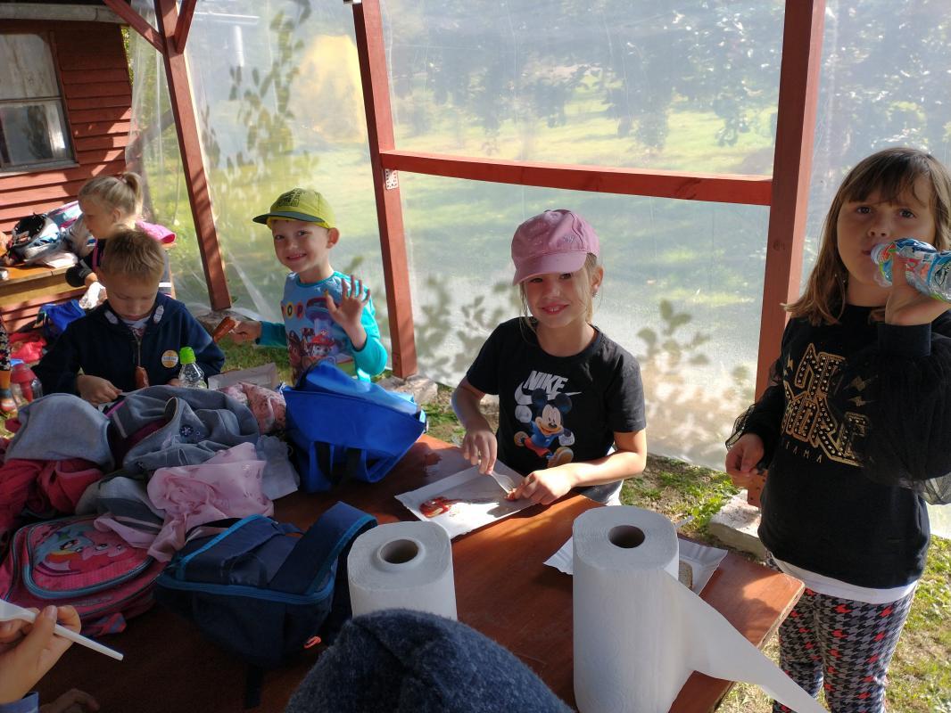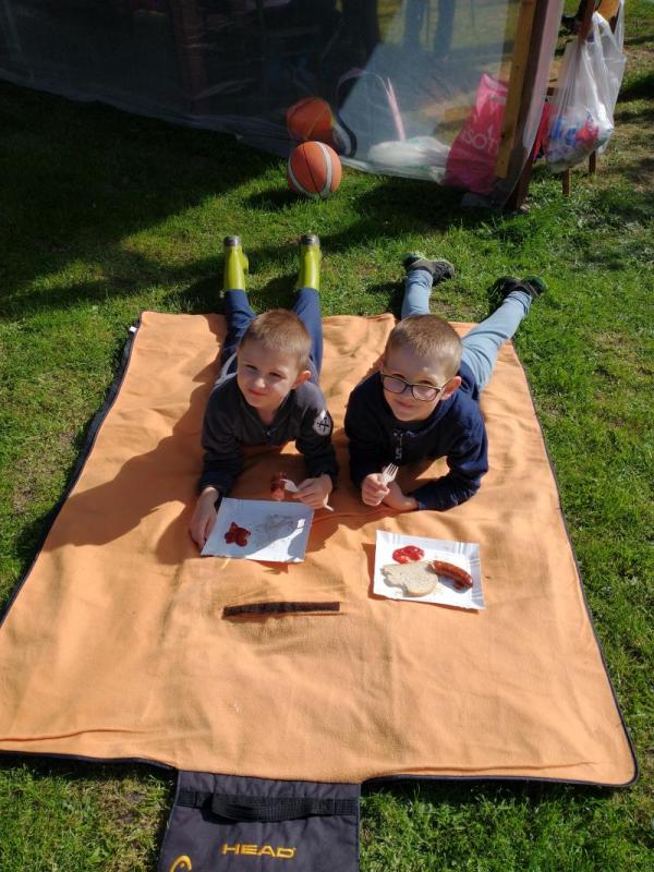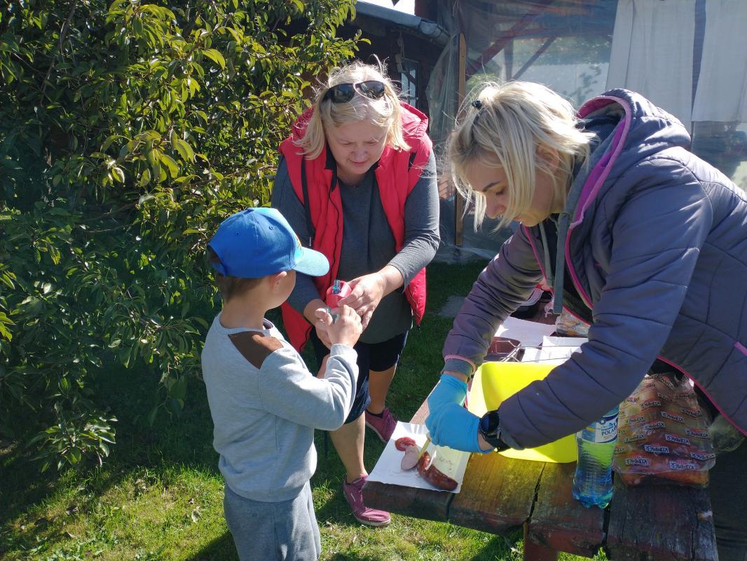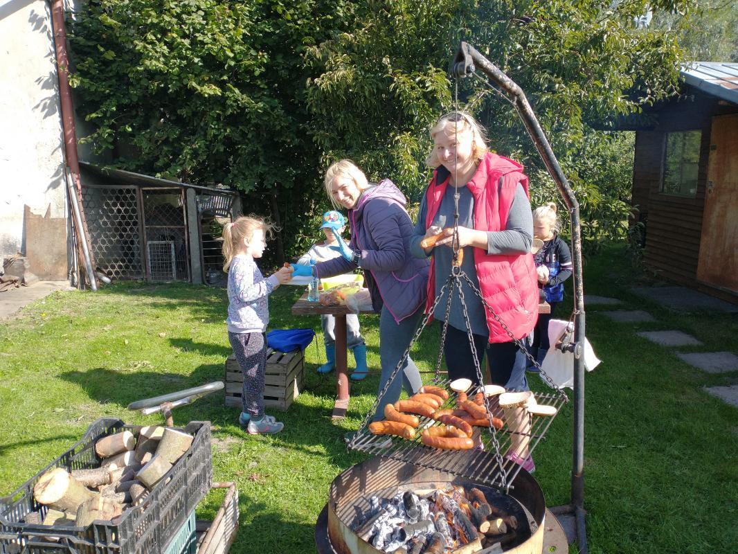 Po zbieraniu ziemniaków, czekała na nich niespodzianka mamusie: Natalia Drąg, Anna Rutkowska i Aleksandra Grudniewska przygotowały kiełbasowy poczęstunek.