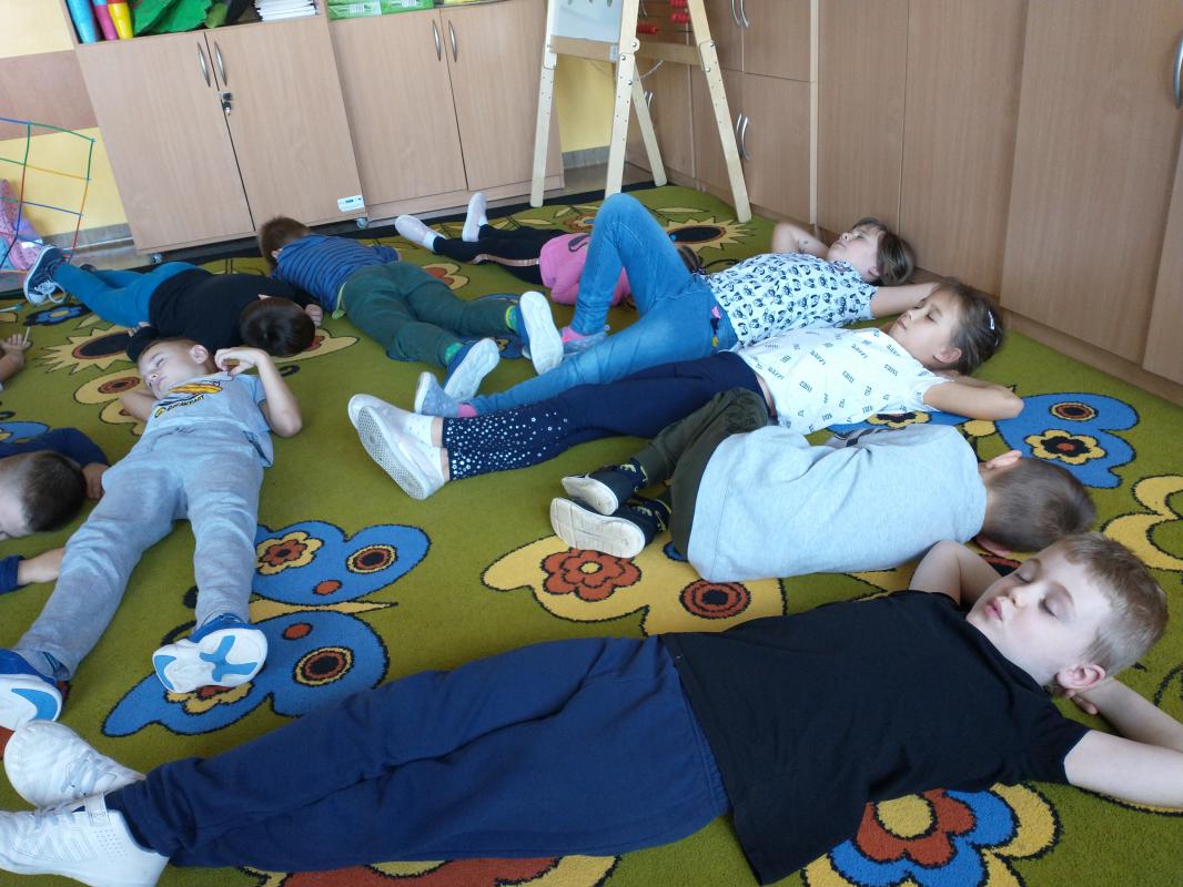 Wykonaliśmy wiele zadań, które pobudziły naszą wyobraźnię. Wysłuchaliśmy opowiadania „Żółty balonik”. Relaksowaliśmy się przy pięknej muzyce i wierszu „Wyobraźnia”.