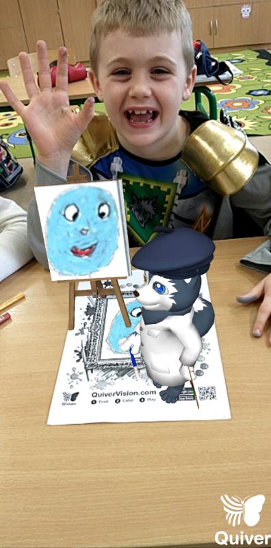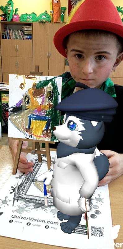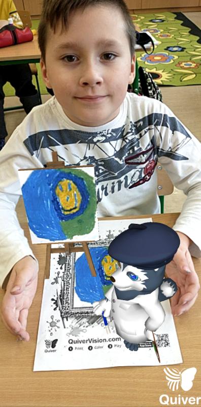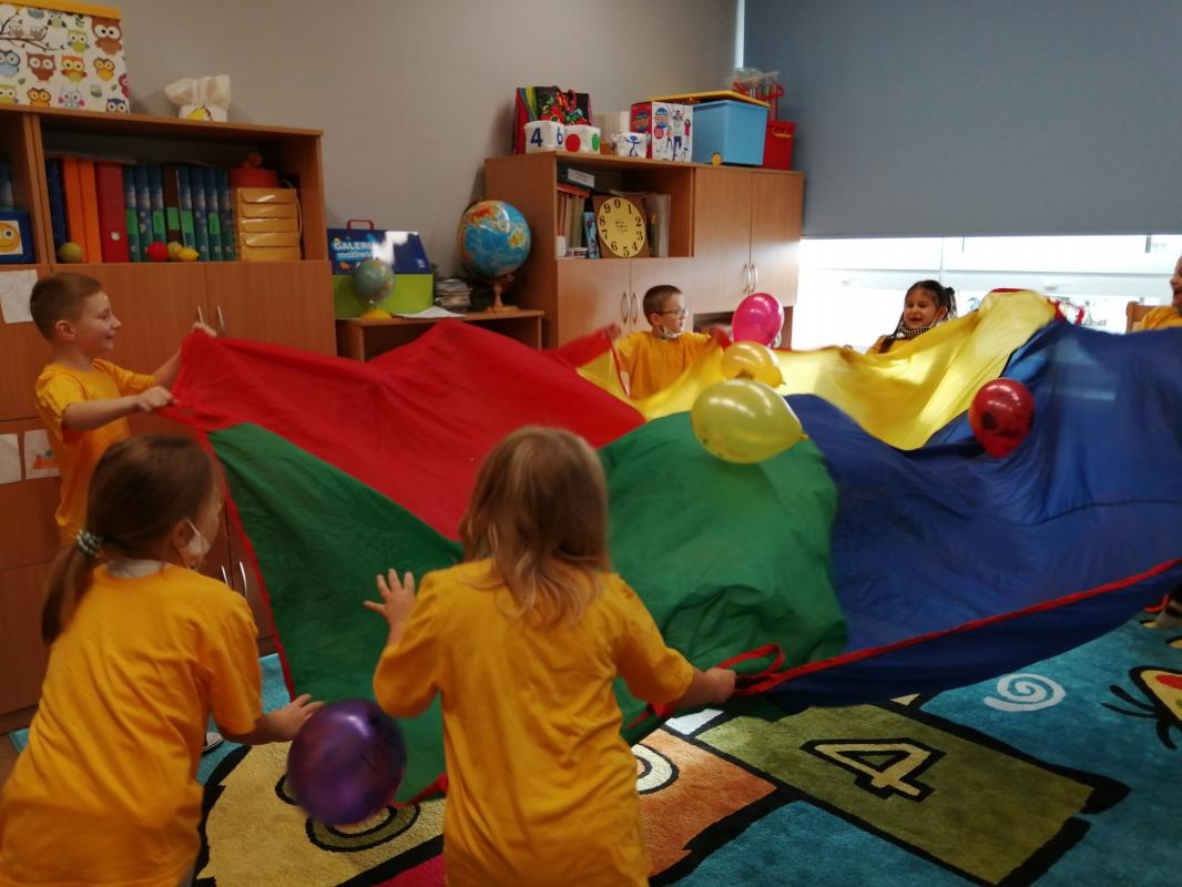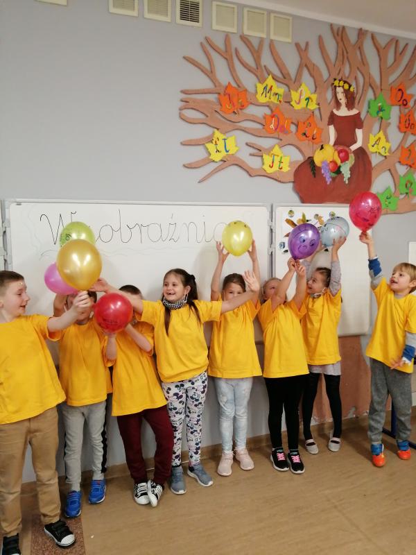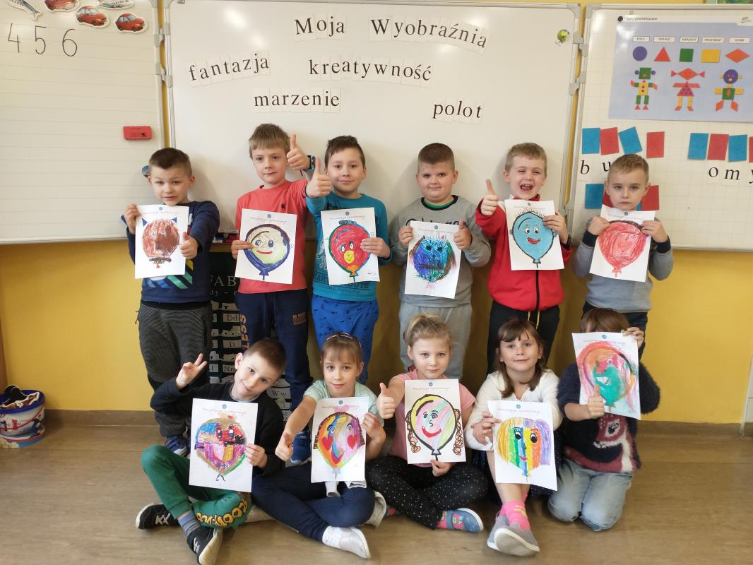 Wykonaliśmy prace plastyczne „Mój balonik marzeń”. Śpiewaliśmy piosenkę „Moc wyobraźni”. Były wesołe zabawy z żółtym balonikiem oraz prace z użyciem aplikacji Quiver.