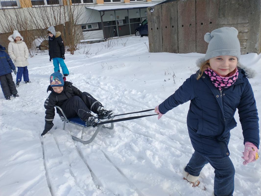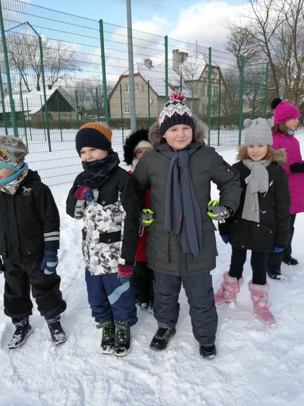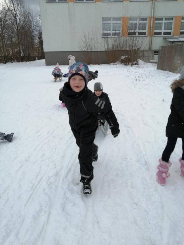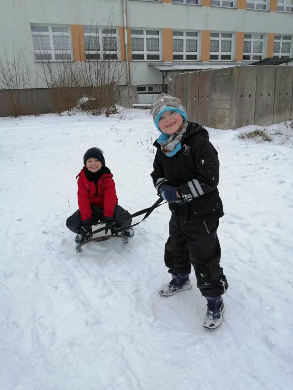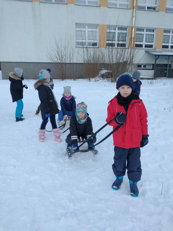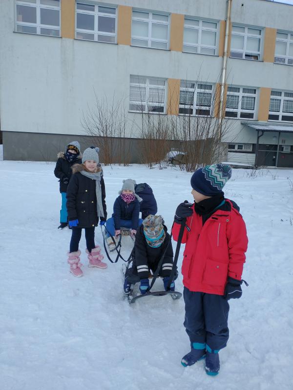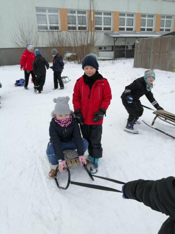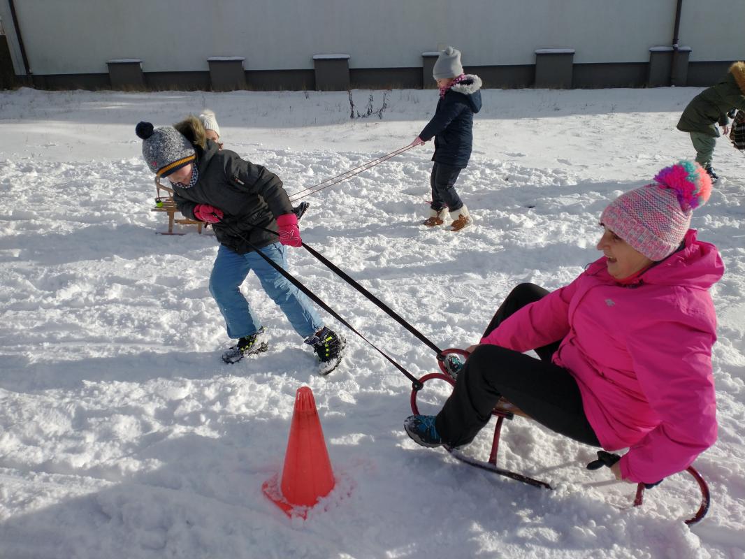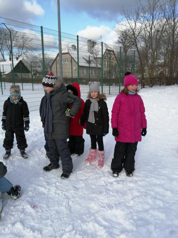 Pierwszaki przez dwa tygodnie czerpały radość ze wspólnych zabaw na śniegu na podwórku szkolnym.