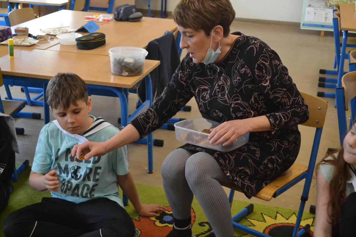 Zajęcie przeprowadziła miłośniczka i „znawca” bursztynu Bożena Nowak.