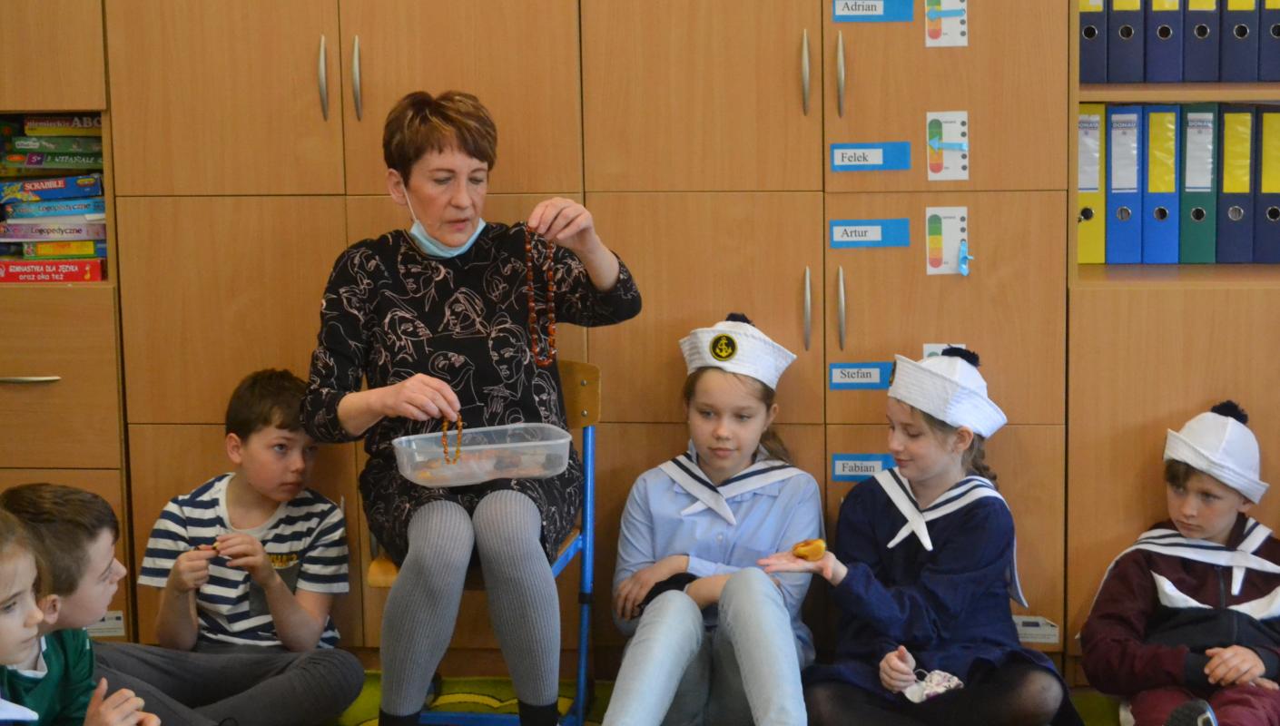 Otrzymały woreczki z bursztynem, który zostanie wykorzystany do wykonania prac o tematyce morskiej.