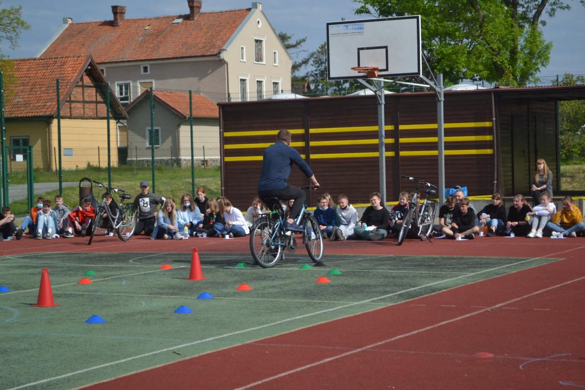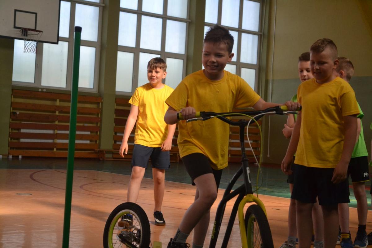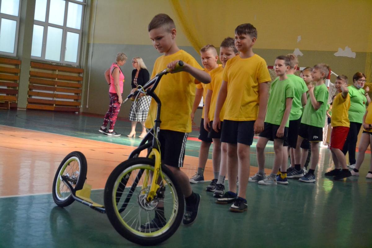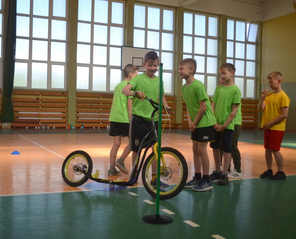 Uczniowie mieli także okazję do aktywności sportowej na rowerach oraz hulajnodze.