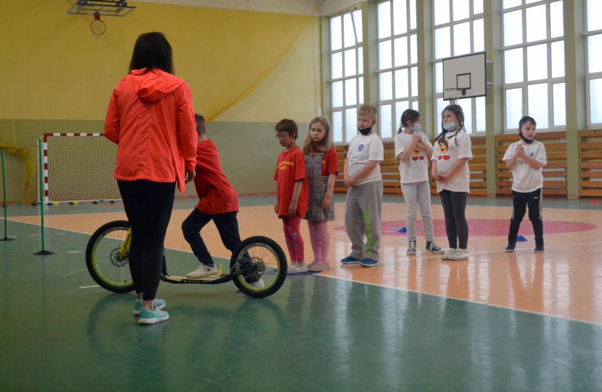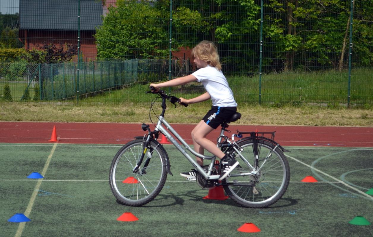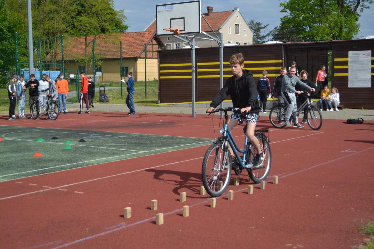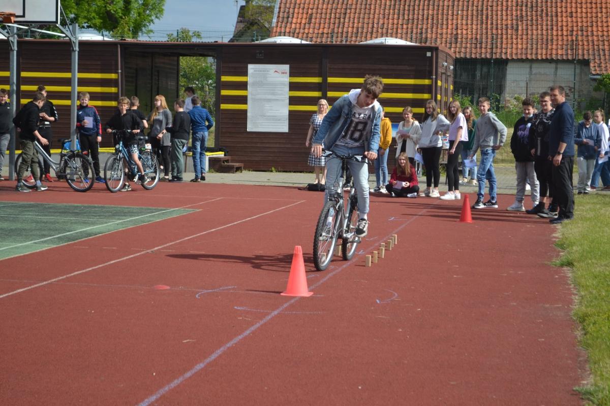 Uczniowie mieli także okazję do aktywności sportowej na rowerach oraz hulajnodze.