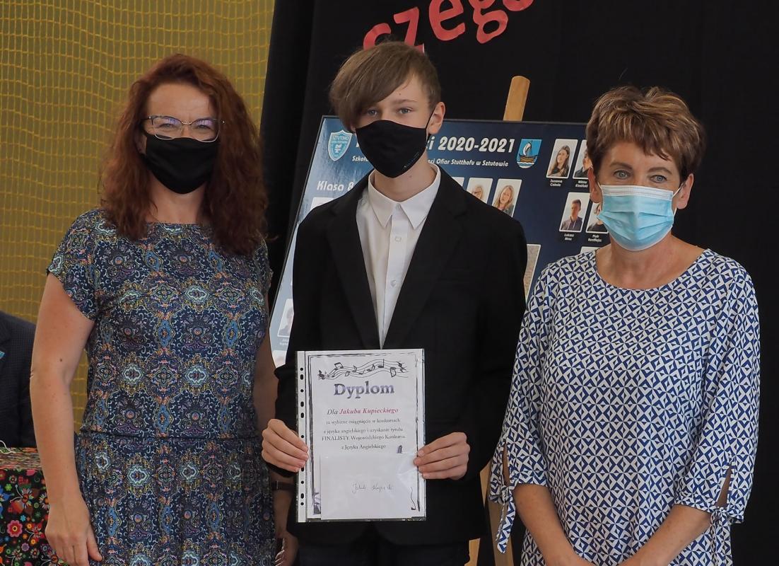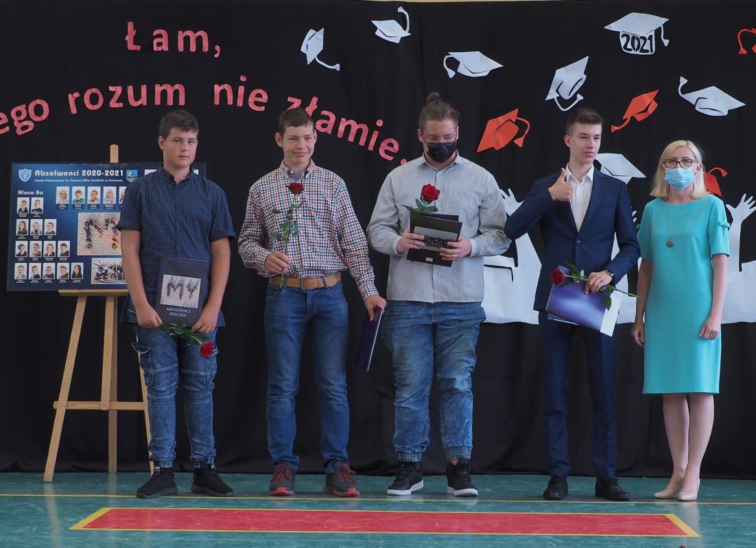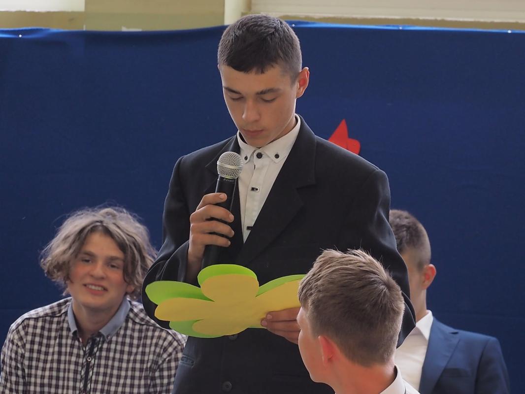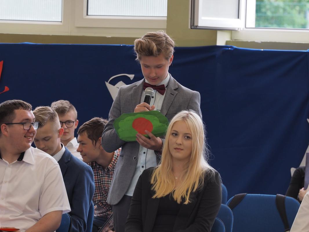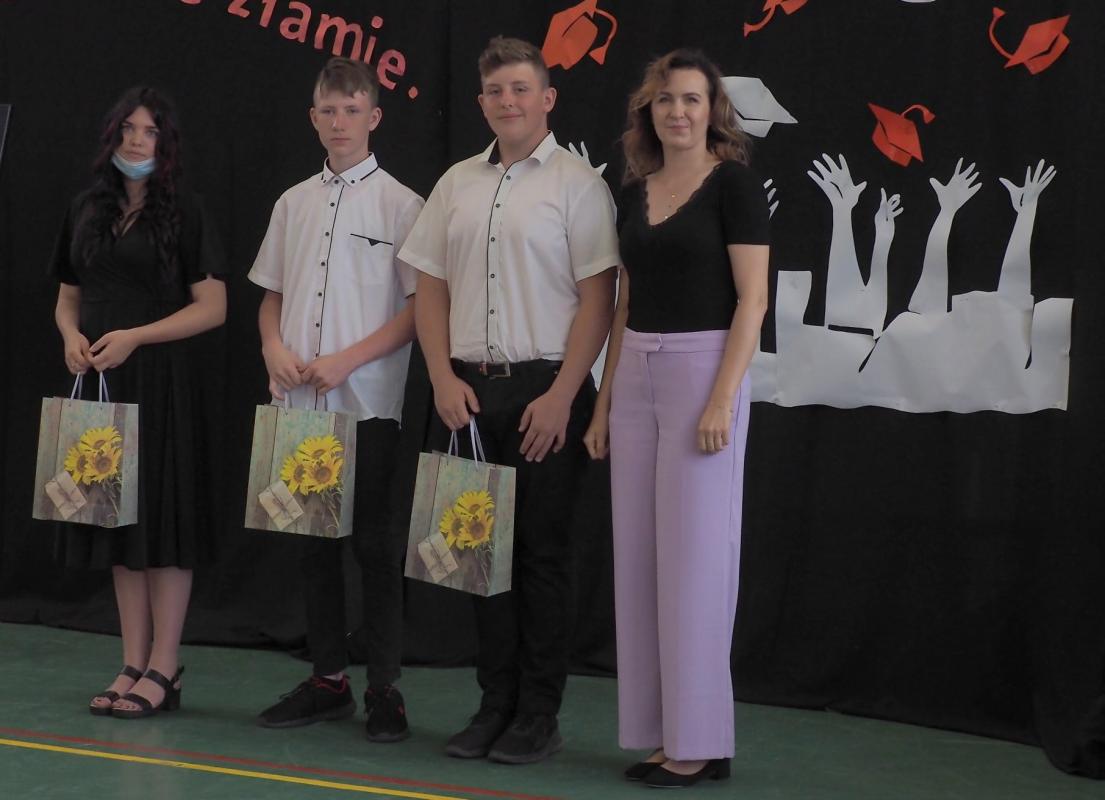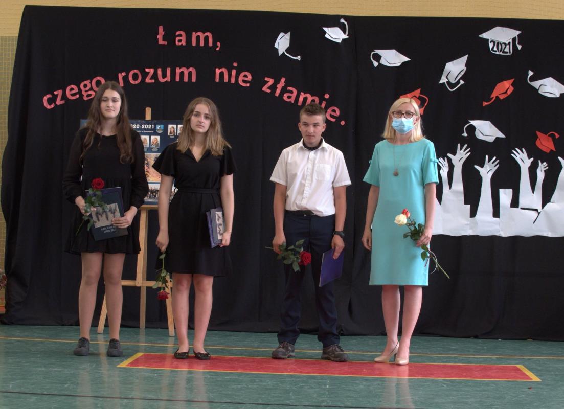 Gratulacje i nagrodę otrzymał Jakub Kupiecki za przygotowanie do wojewódzkiego konkursu języka angielskiego oraz uczniowie zaangażowani w pracę samorządu Uczniowskiego.