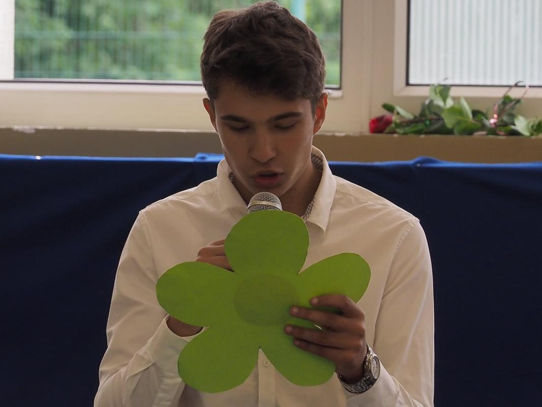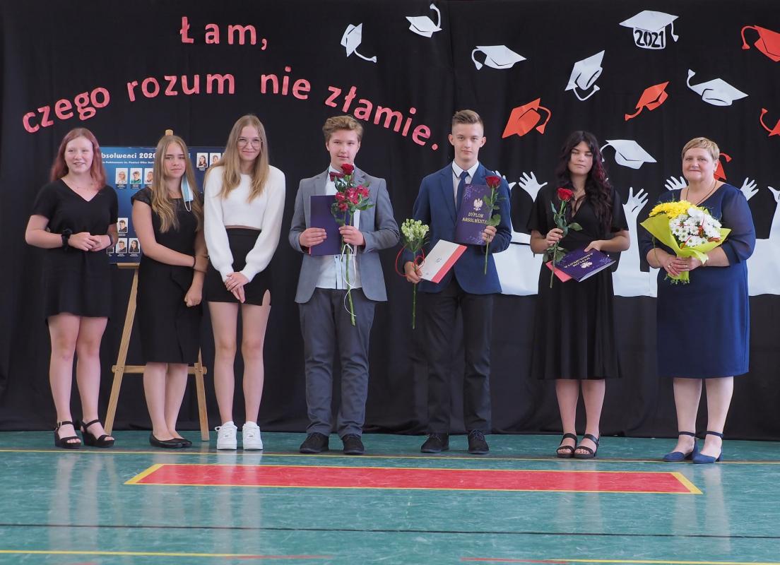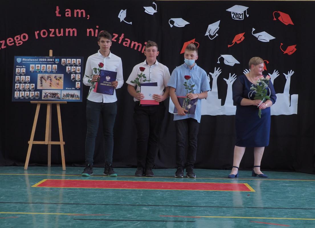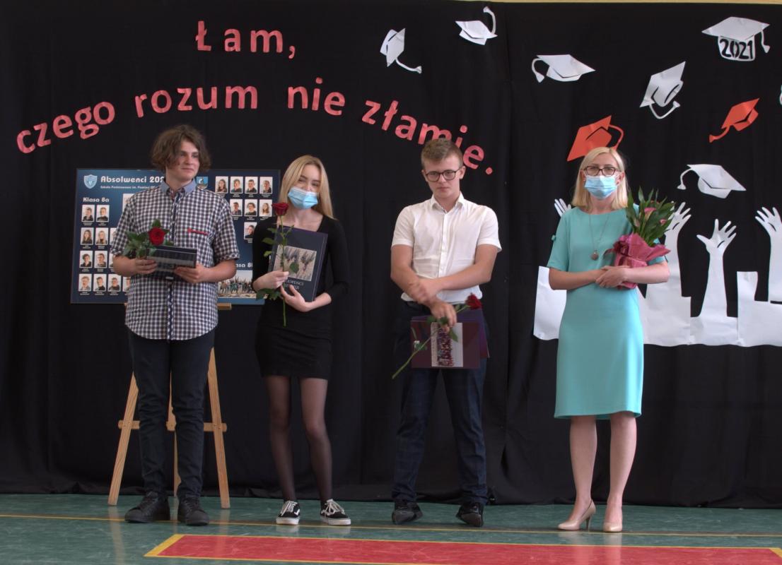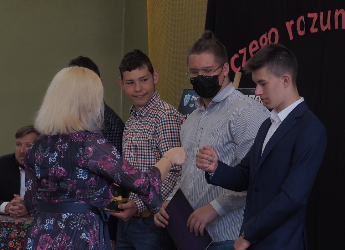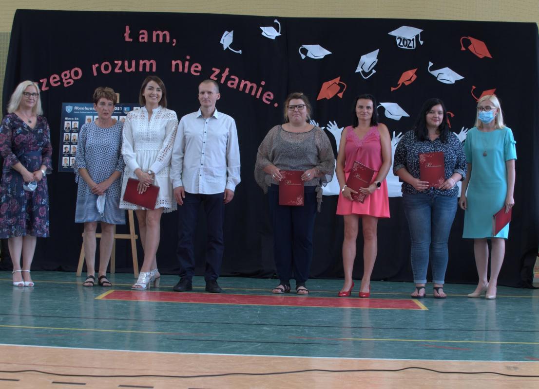 Gratulacje i nagrodę otrzymał Jakub Kupiecki za przygotowanie do wojewódzkiego konkursu języka angielskiego oraz uczniowie zaangażowani w pracę samorządu Uczniowskiego.