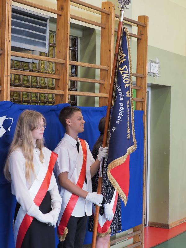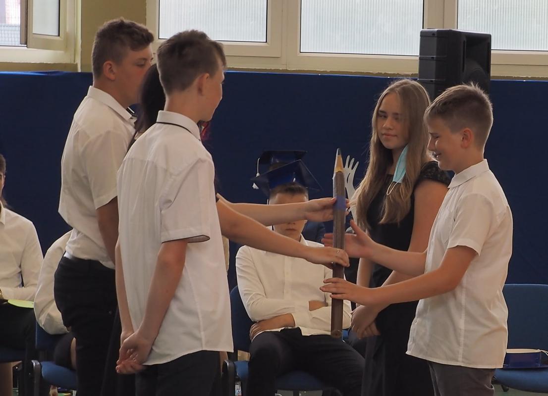 W czasie pożegnania ósmoklasistów opieka nad sztandarem szkoły została powierzona następcom, tak samo jak władza w Samorządzie Uczniowskim.