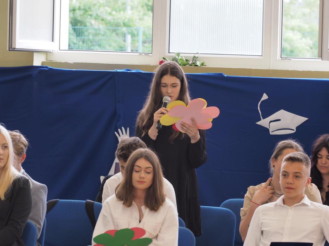 Były także słowa pożegnania i refleksji od ósmoklasistów dla młodszych kolegów i koleżanek oraz pracowników szkoły, od ich rodziców dla uczniów i nauczycieli.