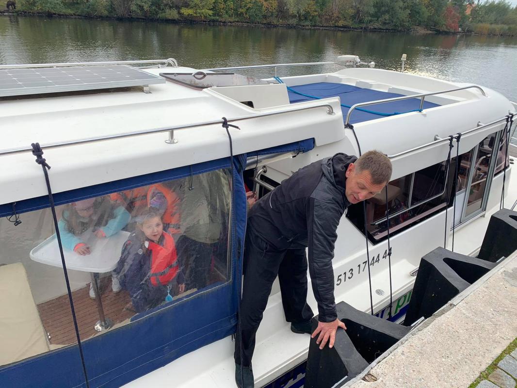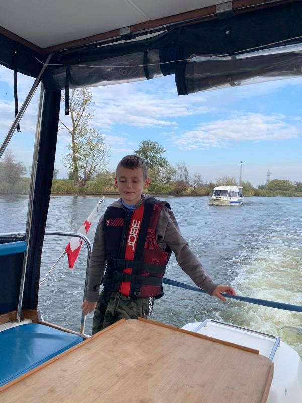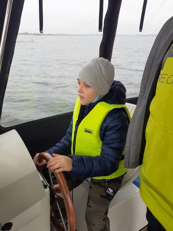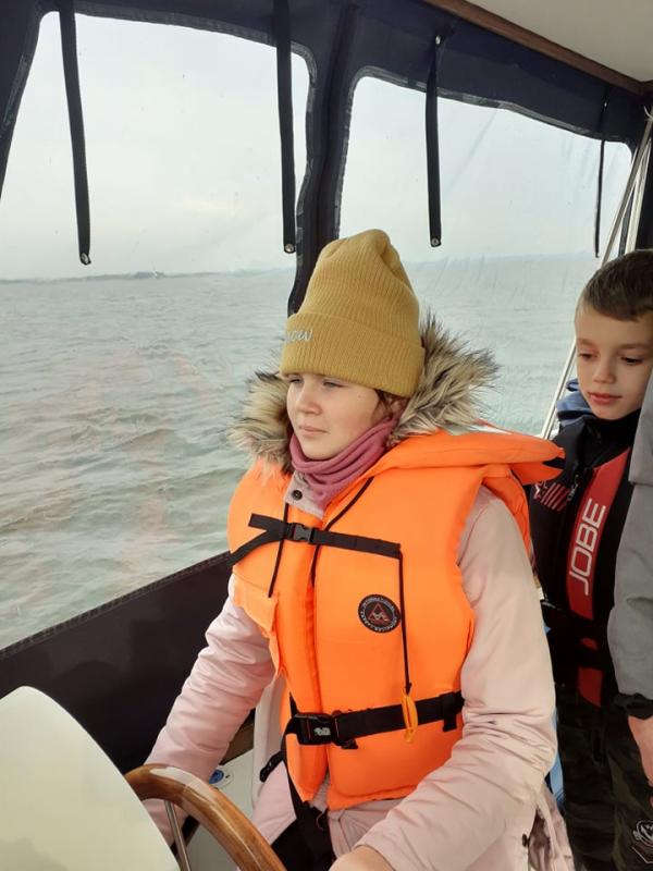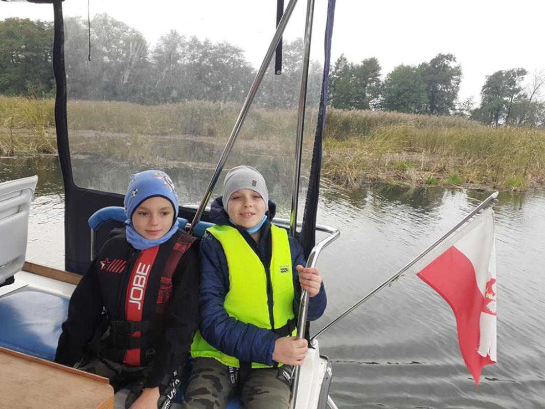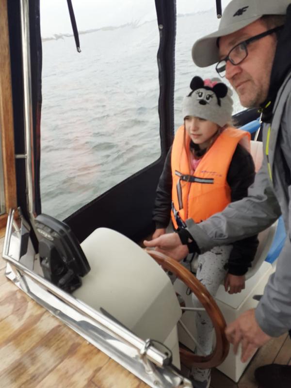 Dzieci pływały na dwóch hausboatach po Szkarpawie, Nogacie i Zalewie Wiślanym, miały też możliwość sterowania łodzią.