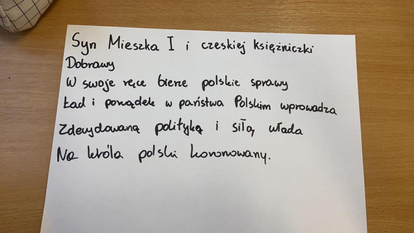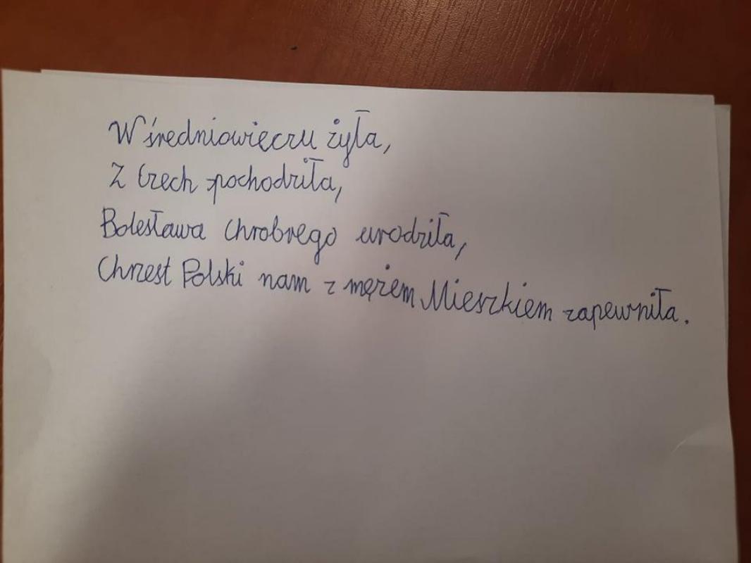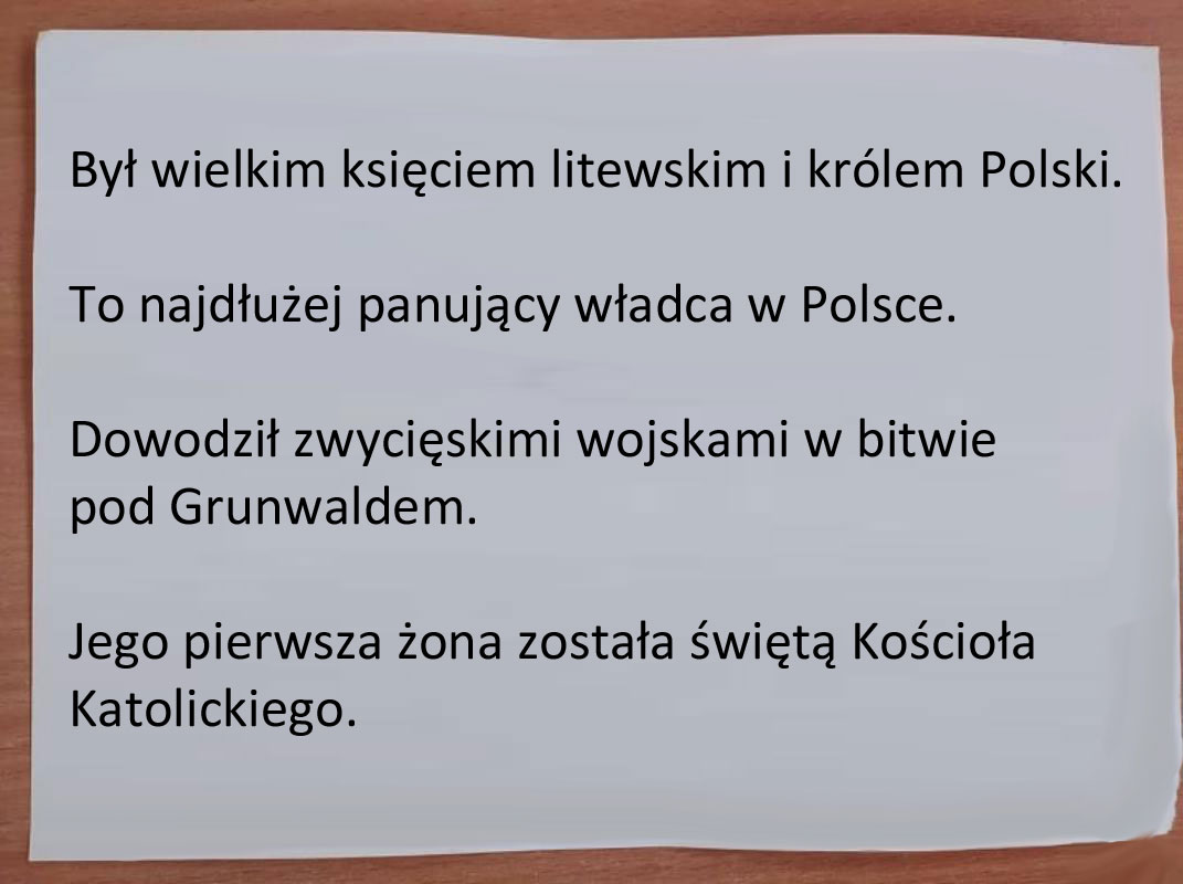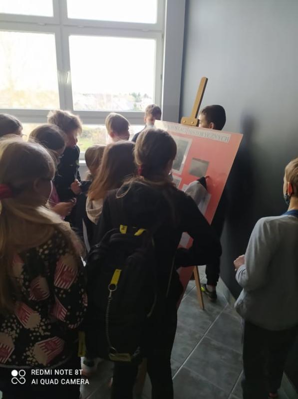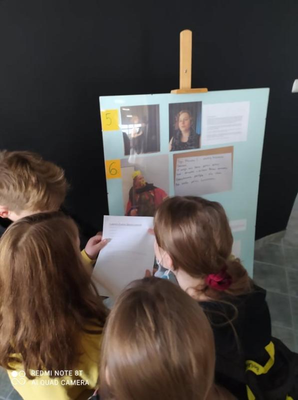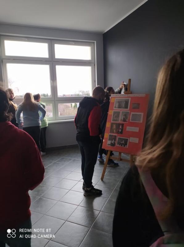 Oprócz zdjęć uczniowie przygotowali zagadki związane z prezentowana przez siebie postacią historyczną.