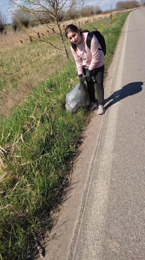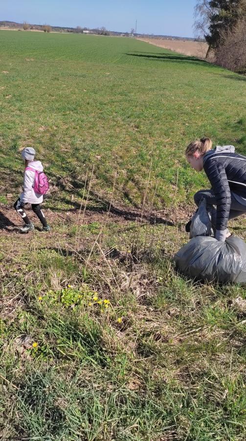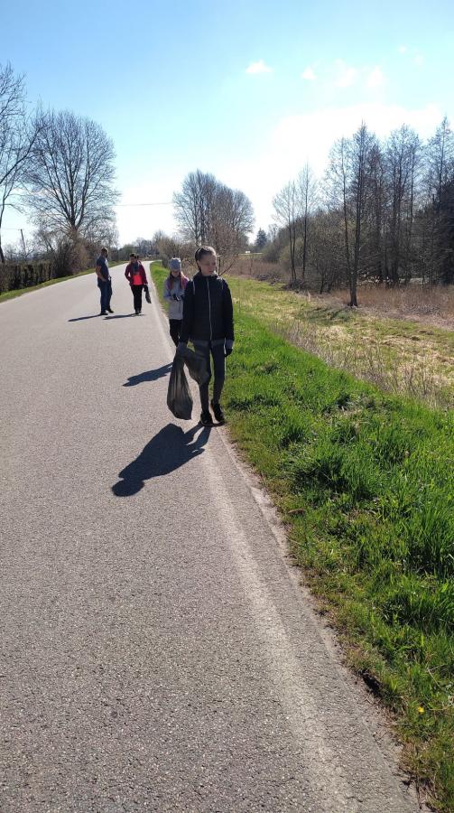 - Ta grupa sprzątała w towarzystwie Pani Beaty Bąk. Grupa poruszała się drogą w centrum wsi Łaszka, (Łaszka Miód, Łaszka Sklep). Przeszła od końca wsi w stronę Sztutowa. Przewidywaliśmy najwięcej pracy w okolicach sklepu, ale okazało się, że ciekawe znaleziska były wszędzie, np. w okolicach boiska.