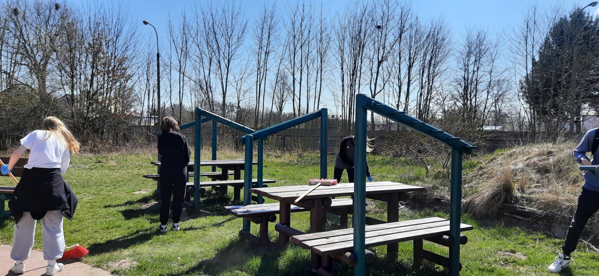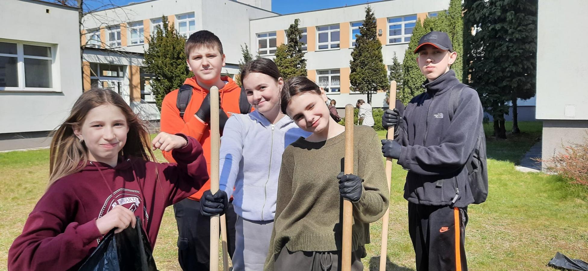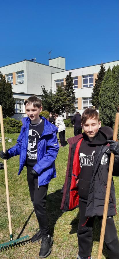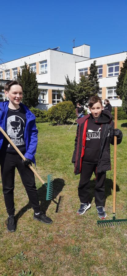 - Najstarsi uczniowie szkoły wykonali zadania przydzielone przez Panią Alicję Szmyt. Nie było łatwo gdyż ta grupa musiała przegrabić szkolny ogród, zebrać śmieci z wydmy edukacyjnej, pozbierać gałęzie z obszaru pomiędzy salą gimnastyczną a placem zabaw. Było dużo grabienia, pielenia i ciężkiej fizycznej pracy, ale drużyna podołała i teren wokół szkoły wygląda dużo lepiej.