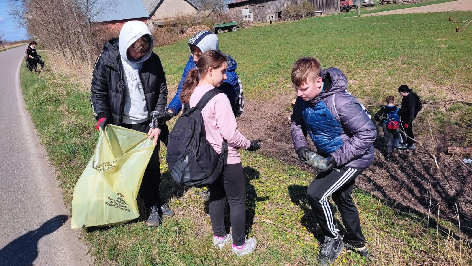 Wszystkie grupy znalazły mnóstwo śmieci. Komplet otrzymanych z Urzędu Gminy worków został zapełniony- butelkami plastikowymi i szklanymi, różnego rodzaju workami po nawozach i materiałach budowlanych. Odkryto i uprzątnięto wysypiska śmieci zawierające stare buty, ubrania, plastikowe krzesła, rowerki. Zebrano bardzo dużo butelek po alkoholach wszelakich rodzajów.