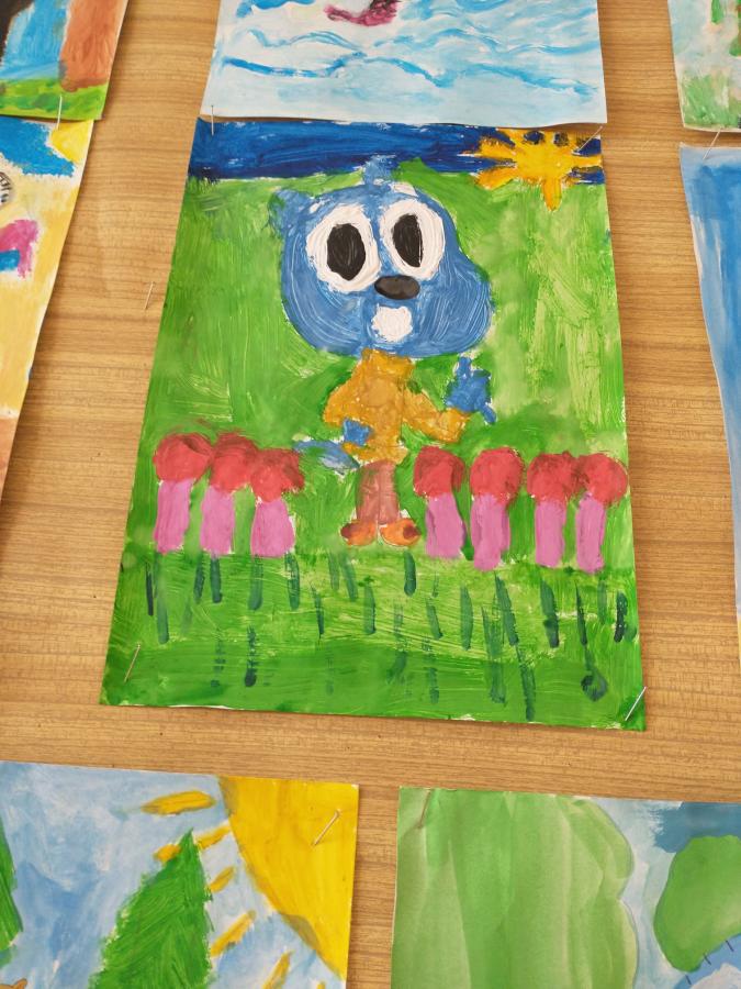 Klasy 3 – malowały ilustrację do jednej z dowolnie wybranej lektury szkolnej( Afryka Kazika, Cukierku, ty łobuzie, Dziadek i niedźwiadek, Dziewczynka z parku).