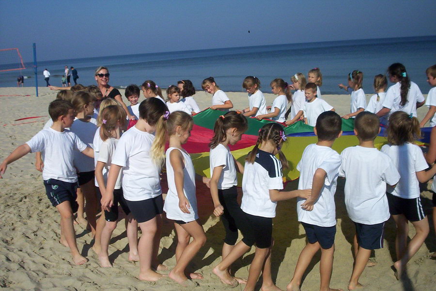 Wychowawczynie zaproponowały dzieciom zajęcia wychowania fizycznego na piachu morskim… Było cudownie !
