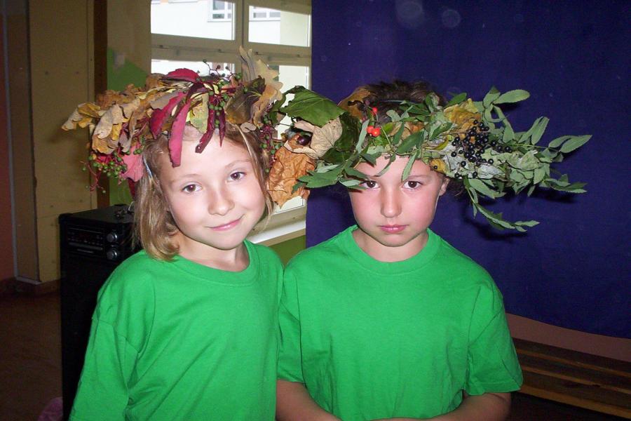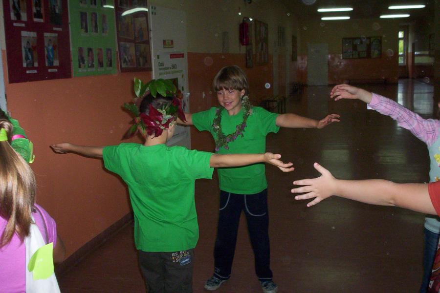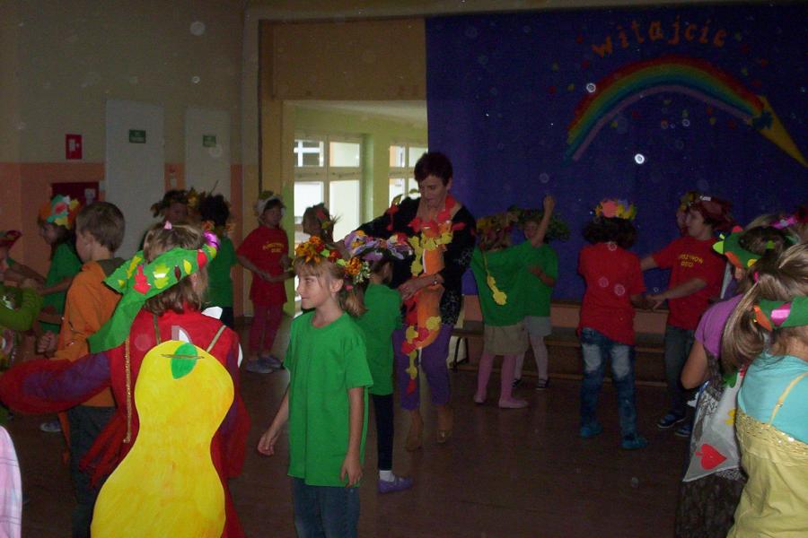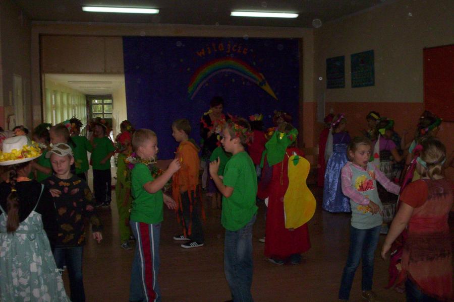 Klasy drugie ruszyły do lasu na poszukiwanie pierwszych oznak jesieni. Po powrocie urządzili bal na cześć Pani jesieni.Zabawa była na 102!
