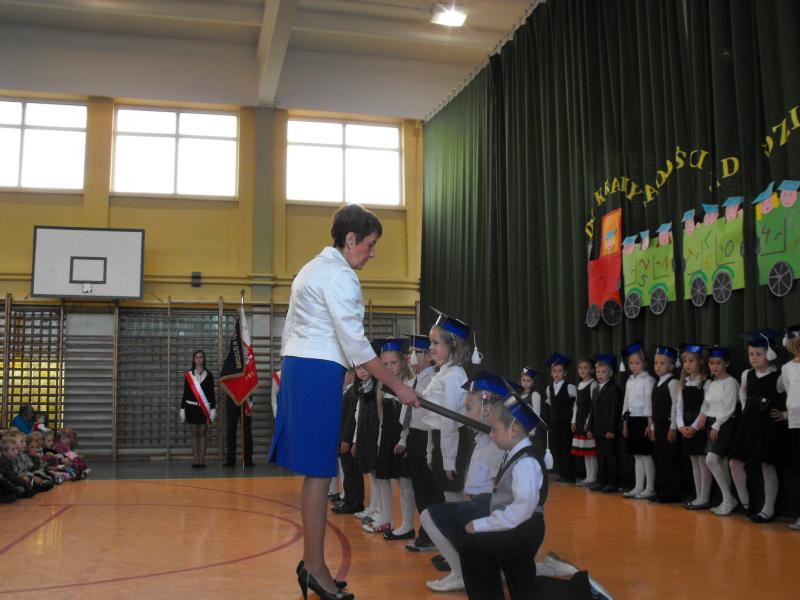 Pasowanie „wielkim ołówkiem” przez Panią Dyrektor Bożenę Nowak było tylko tego potwierdzeniem. Pierwszoklasiści zostali przyjęci do braci uczniowskiej. Ukoronowaniem aktu pasowania było wręczenie pamiątkowych dyplomów. Uczniowie przyjęli życzenia i prezenty ufundowane przez rodziców oraz Bank Spółdzielczy w Stegnie.