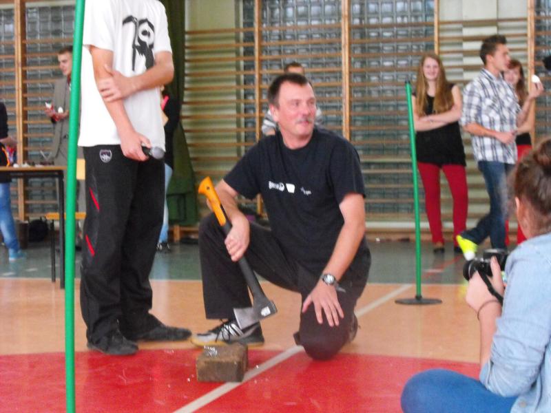 Po ogłoszeniu zwycięstwa klasy I B (GRATULUJEMY!) przyszła pora na przemianę KOTA w GIMNAZJALISTĘ . W rolę szkolnego kata wcielił się Jan Wilkanowski, który wszystkim kotom poobcinał ogony.