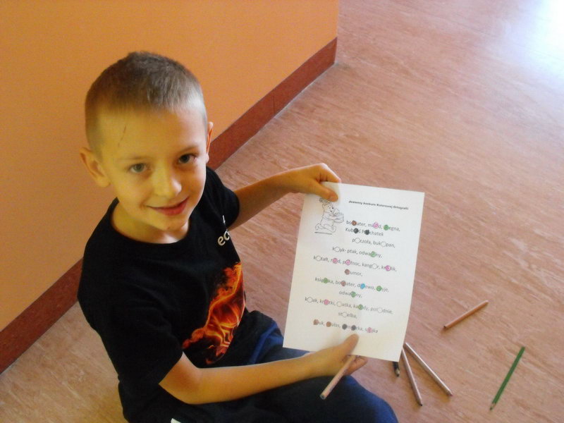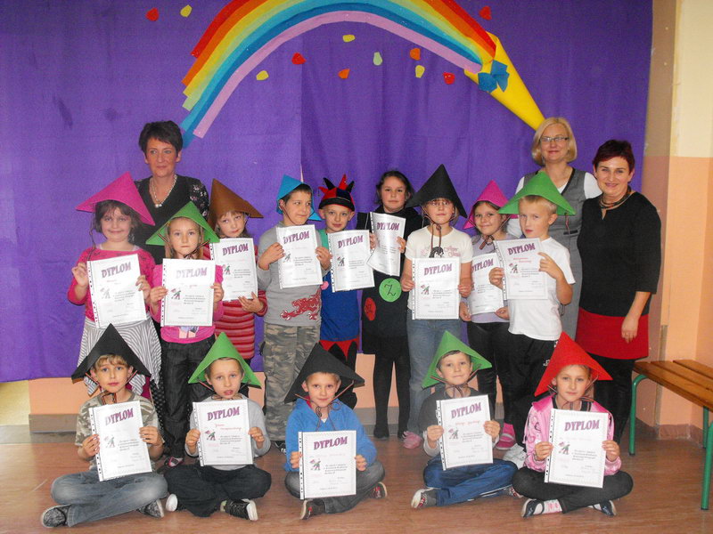 Klasy drugie przystąpiły do malowania kolorowego dyktanda. Bezbłędnymi pracami mogła pochwalić się rekordowa ilość osób -14! Dzieci te otrzymały dyplomy z rąk dyrekcji szkoły.