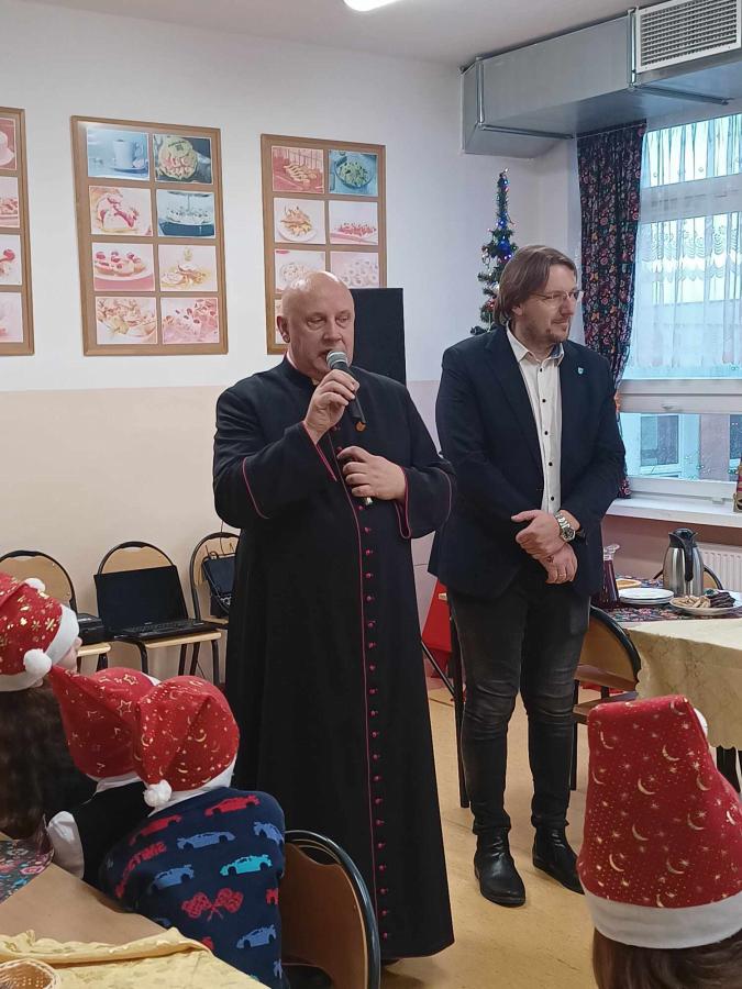 Życzenia składali uczniom: Wójt Gminy Sztutowo- Robert Zieliński, ksiądz proboszcz- Jerzy Drobiński oraz dyrektor szkoły. Było mnóstwo dobrych słów, szczerych rozmów, mnóstwo życzliwości i wspólnego śpiewania. Zapewne wszyscy coraz mocniej poczuli magię świąt, które przecież coraz bliżej.