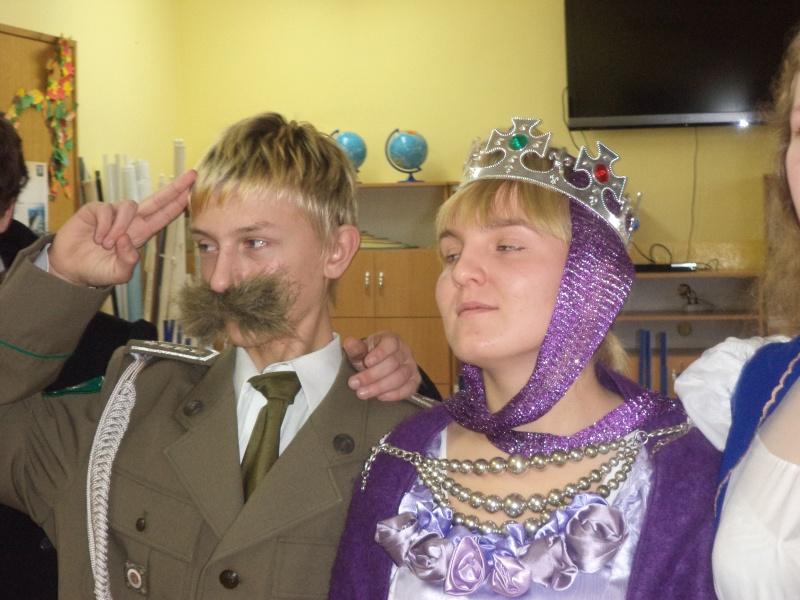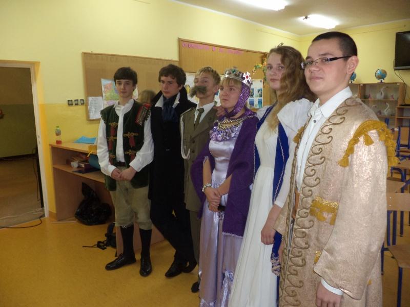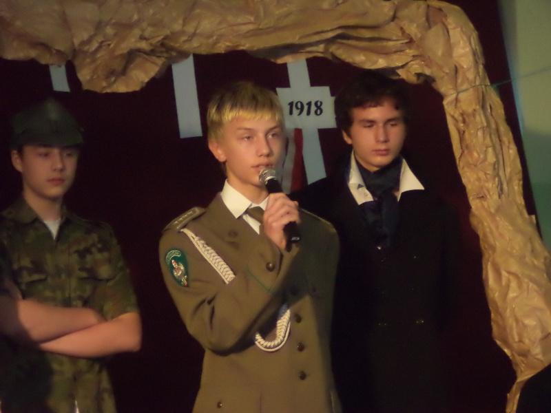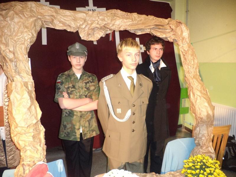W części pierwszej widowiska gimnazjaliści (Nikola Polewiak jako caryca Katarzyna, Agnieszka Zakrzewska, czyli Maria Teresa, Sebastian Bachur – Fryderyk II Wielki, Dawid Grudkowski – Fryderyk Wilhelm II, Kamil Krzyżanowski – Adam Mickiewicz, Kamil Krzyszczyk – Marian Józef Januszajtis – Żegota i Przemysław Kierepka jako Józef Piłsudski) przybliżyli uczniom życiorysy postaci historycznych biorących udział w rozbiorach Polski oraz postaci, które walczyły o niepodległość Polski. W konwencji żywego obrazu i świetnych kostiumach z epoki (autorstwa pani Aliny Niedzielskiej) aktorzy prezentowali się znakomicie. Część patriotyczną uzupełniły wiersze Marii Konopnickiej i Jana Pawła II w interpretacji Julii Zwolickiej i Wiktorii Zientkiewicz.