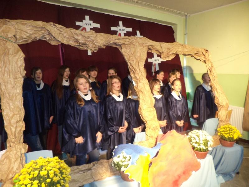 8 listopada uczciliśmy kolejną rocznicę odzyskania przez Polskę niepodległości. Z tej okazji uczniowie gimnazjum i szkoły podstawowej przygotowali montaż słowno- muzyczny. Częścią artystyczną związaną z historią opiekowała się pani Joanna Hulanicka, natomiast częścią muzyczną poświęconą jesieni zajęła się pani Beata Bobryk- Barska.