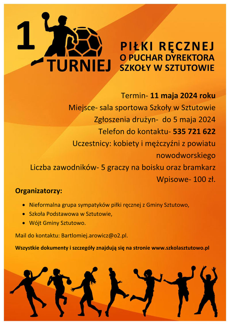 Zgoda rodziców/opiekunów na udział w I TURNIEJU PIŁKI RĘCZNEJ O PUCHAR DYREKTORA SZKOŁY PODSTWOWEJ W SZTUTOWIE- dotyczy osób niepełnoletnich,