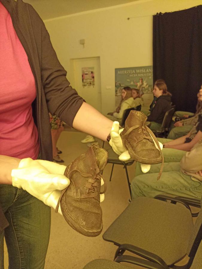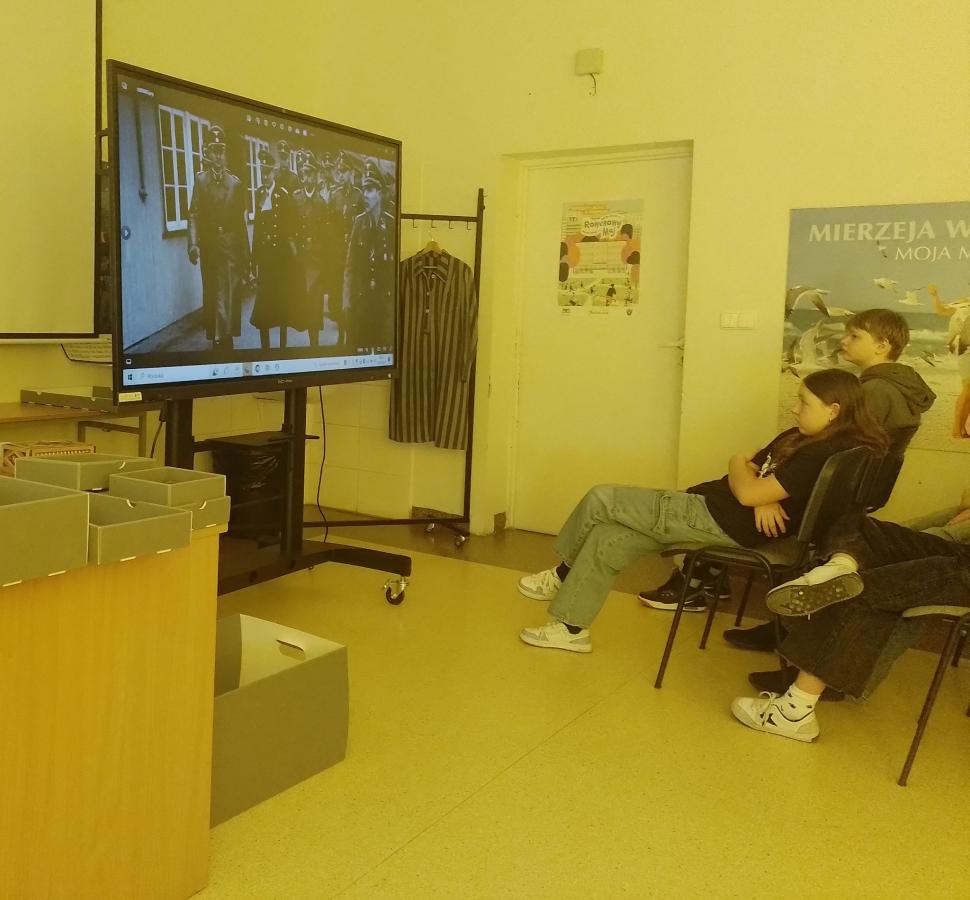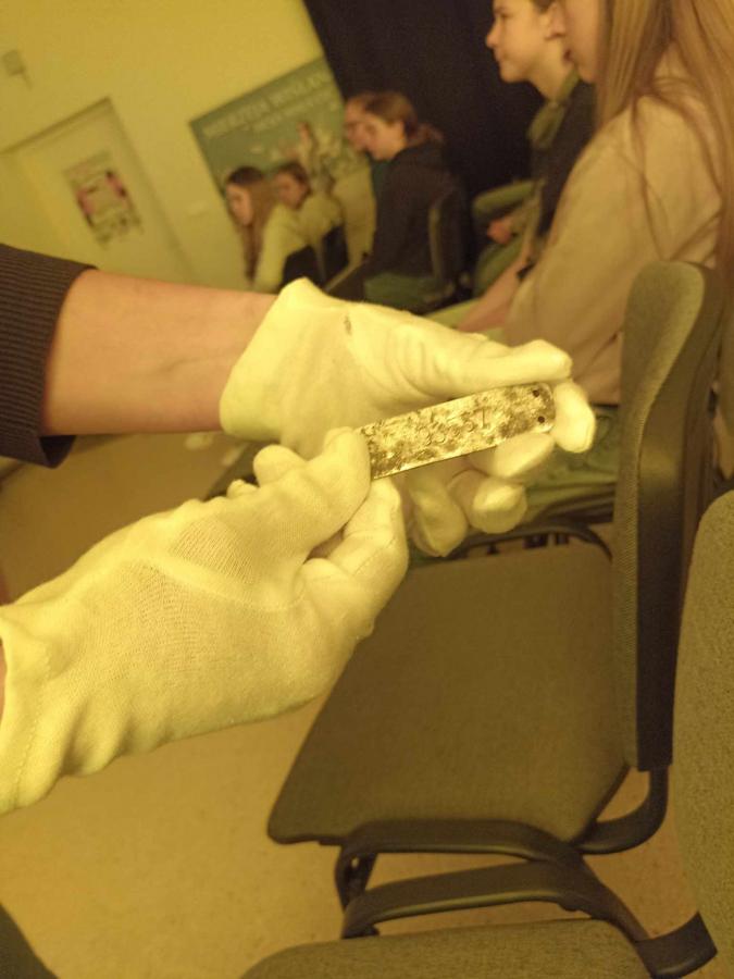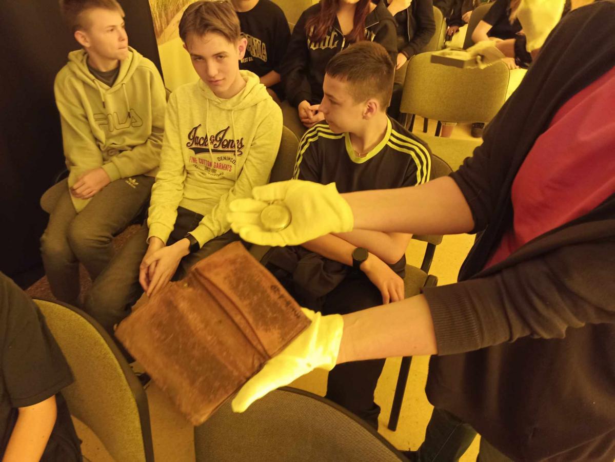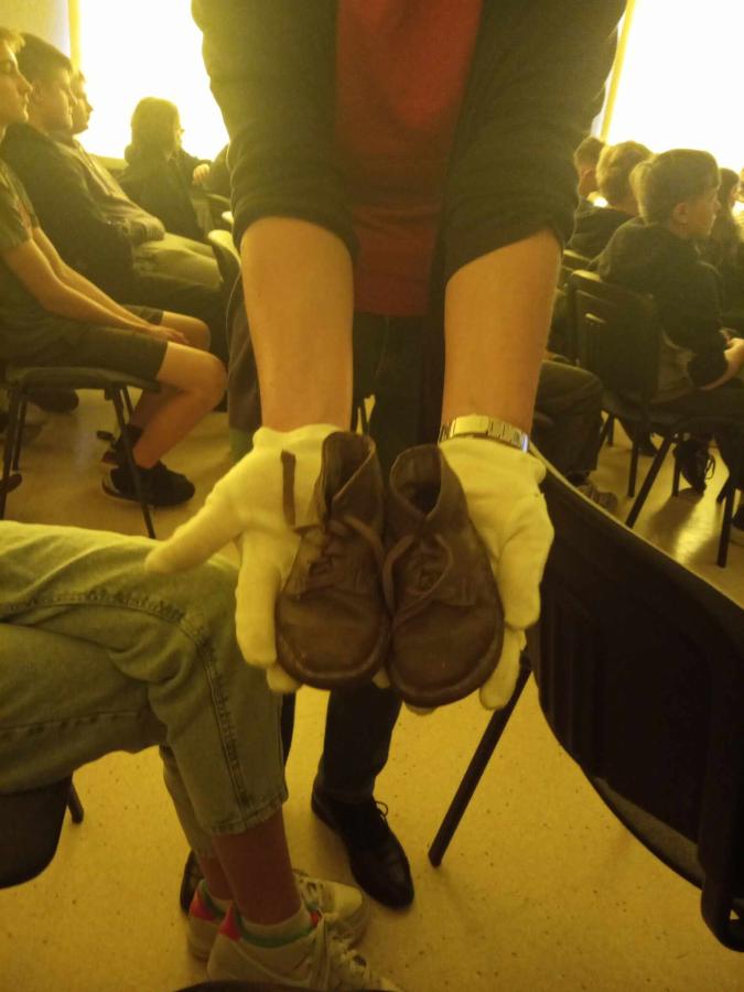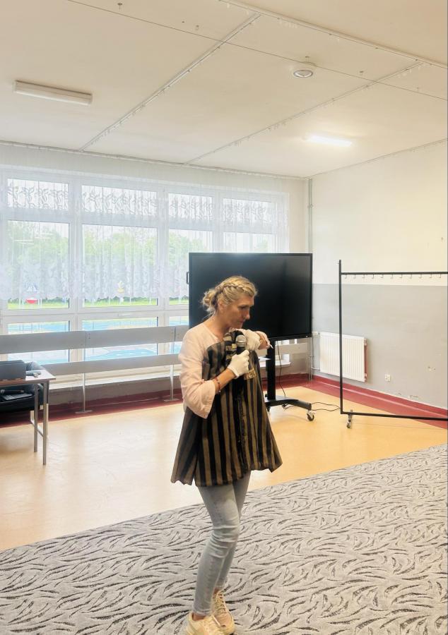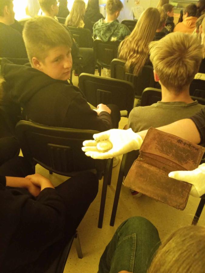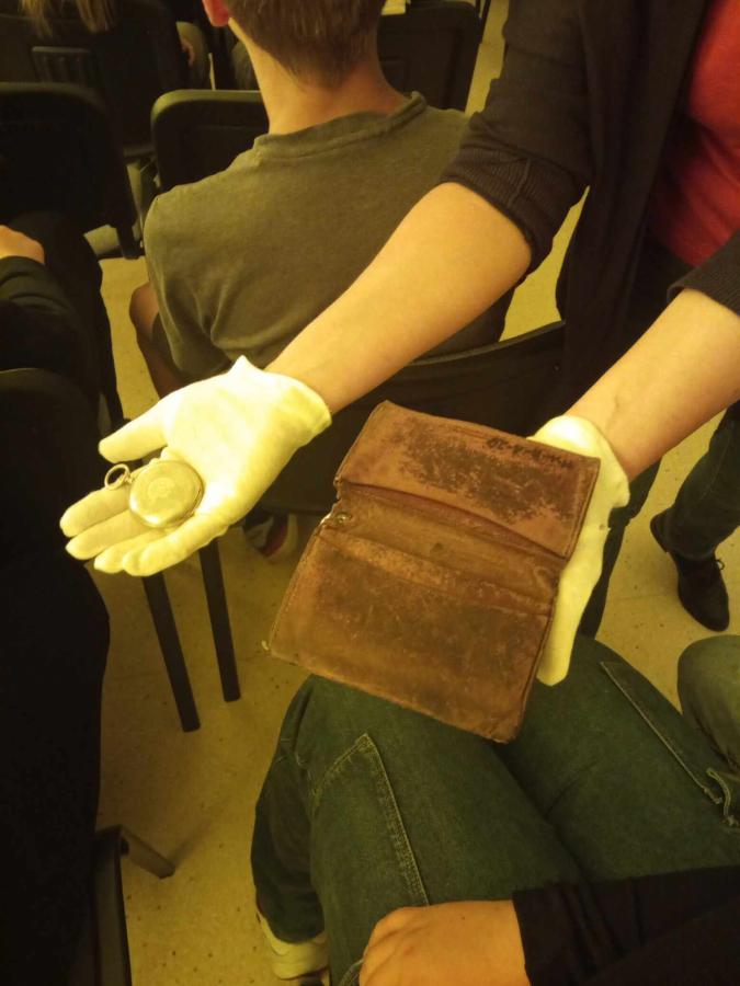 Uczniowie poznali życie więźnia w KL Stutthof poprzez narrację o przedmiotach- na początku, tych odebranych im w dniu przyjęcia do obozu- portfela, zegarka, grzebienia, medalika czy papierośnicy.