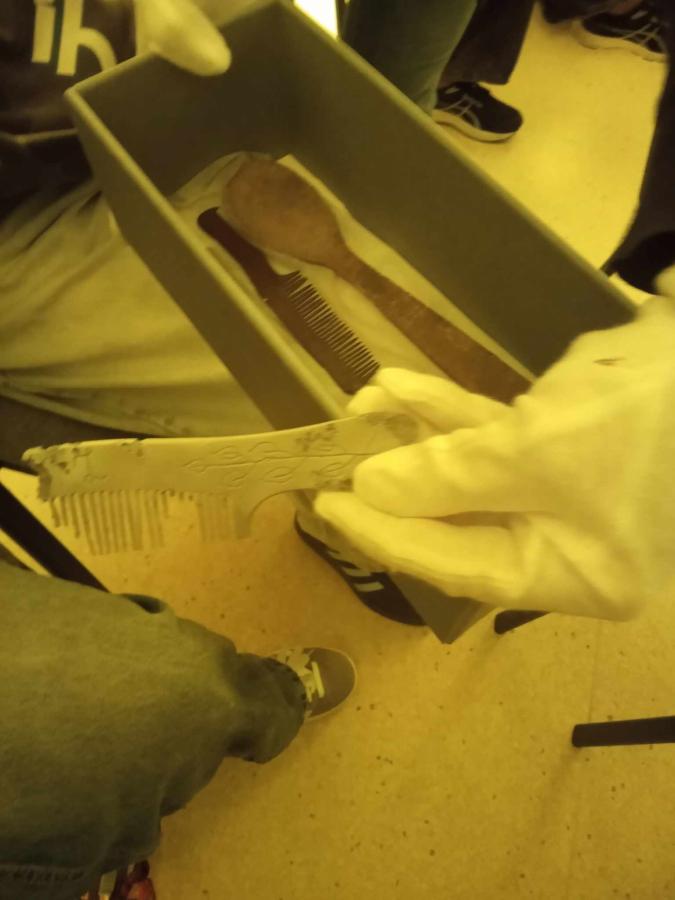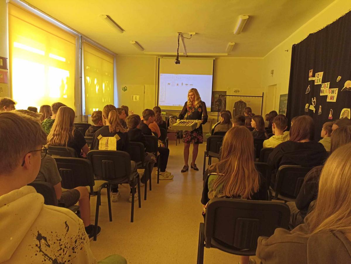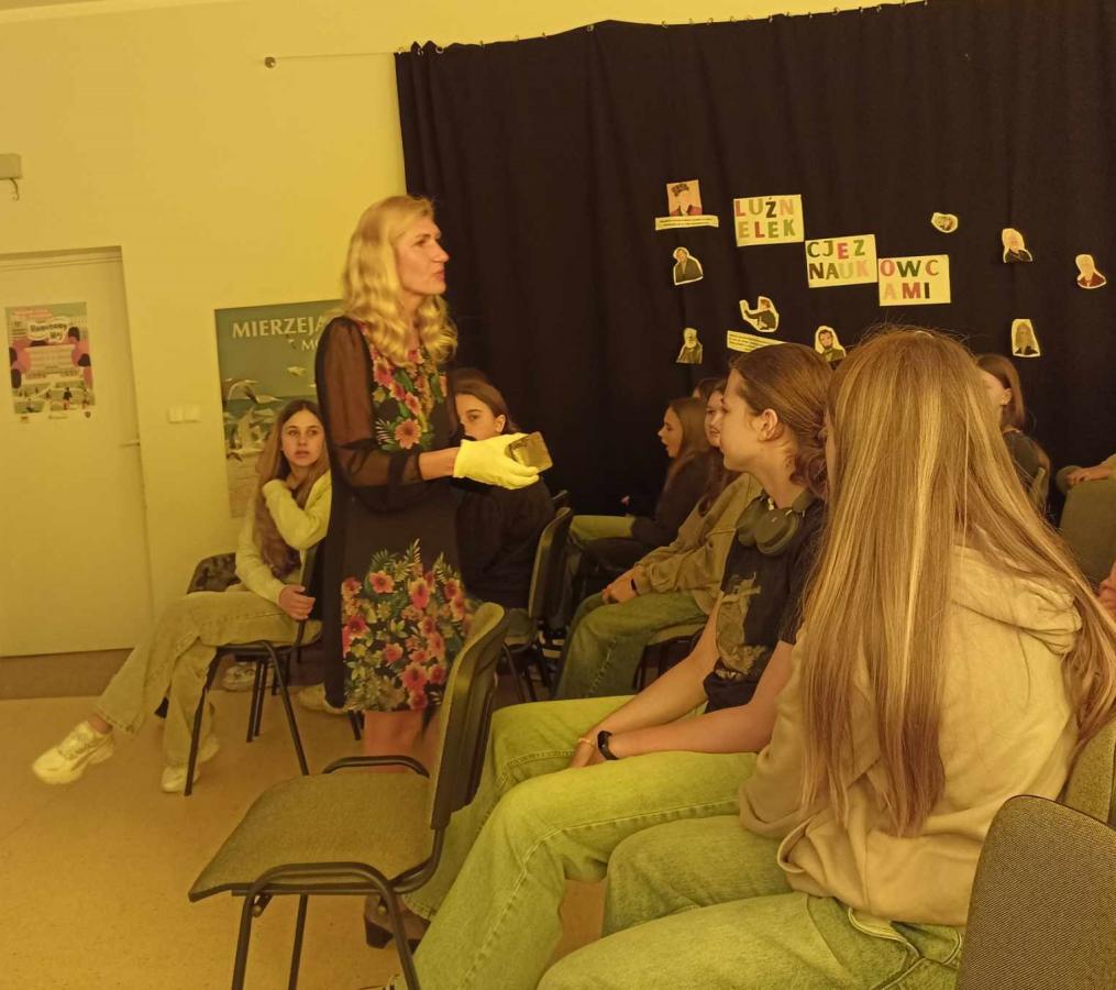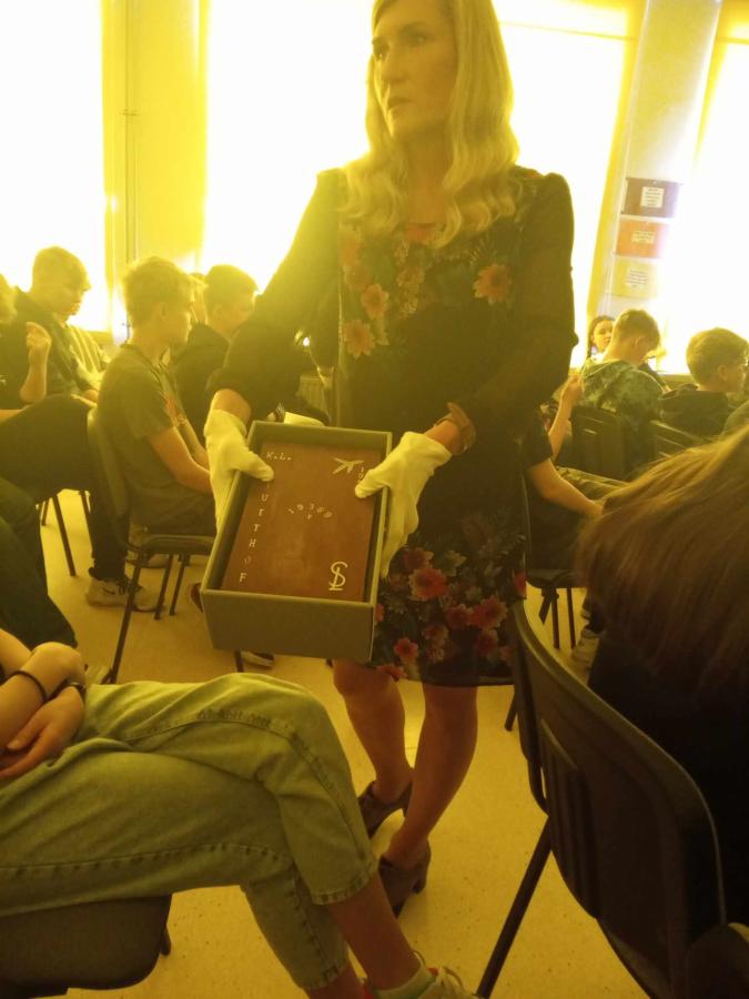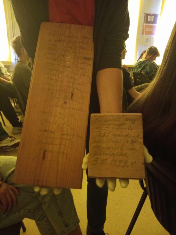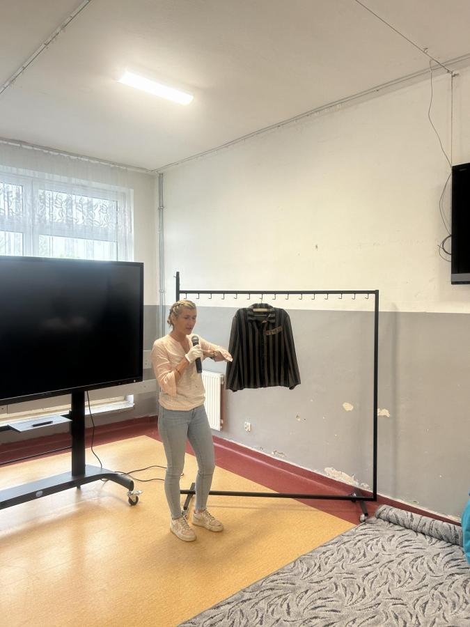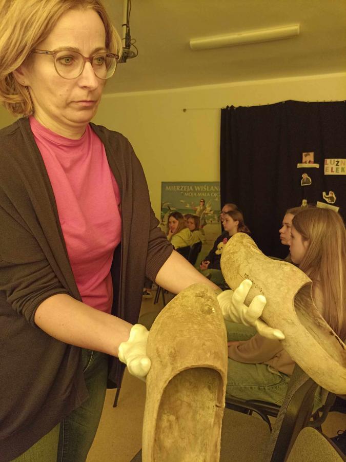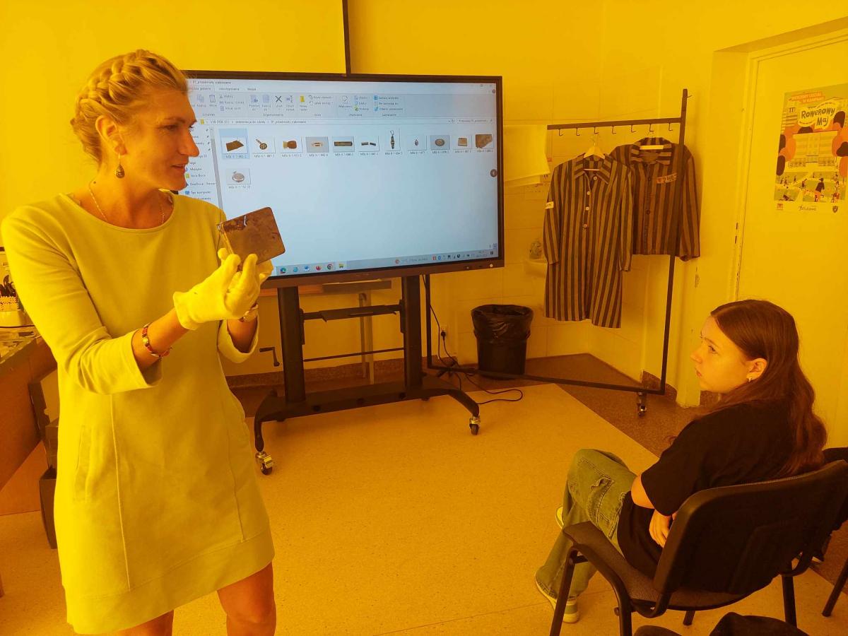 Uczniowie poznali życie więźnia w KL Stutthof poprzez narrację o przedmiotach- na początku, tych odebranych im w dniu przyjęcia do obozu- portfela, zegarka, grzebienia, medalika czy papierośnicy.