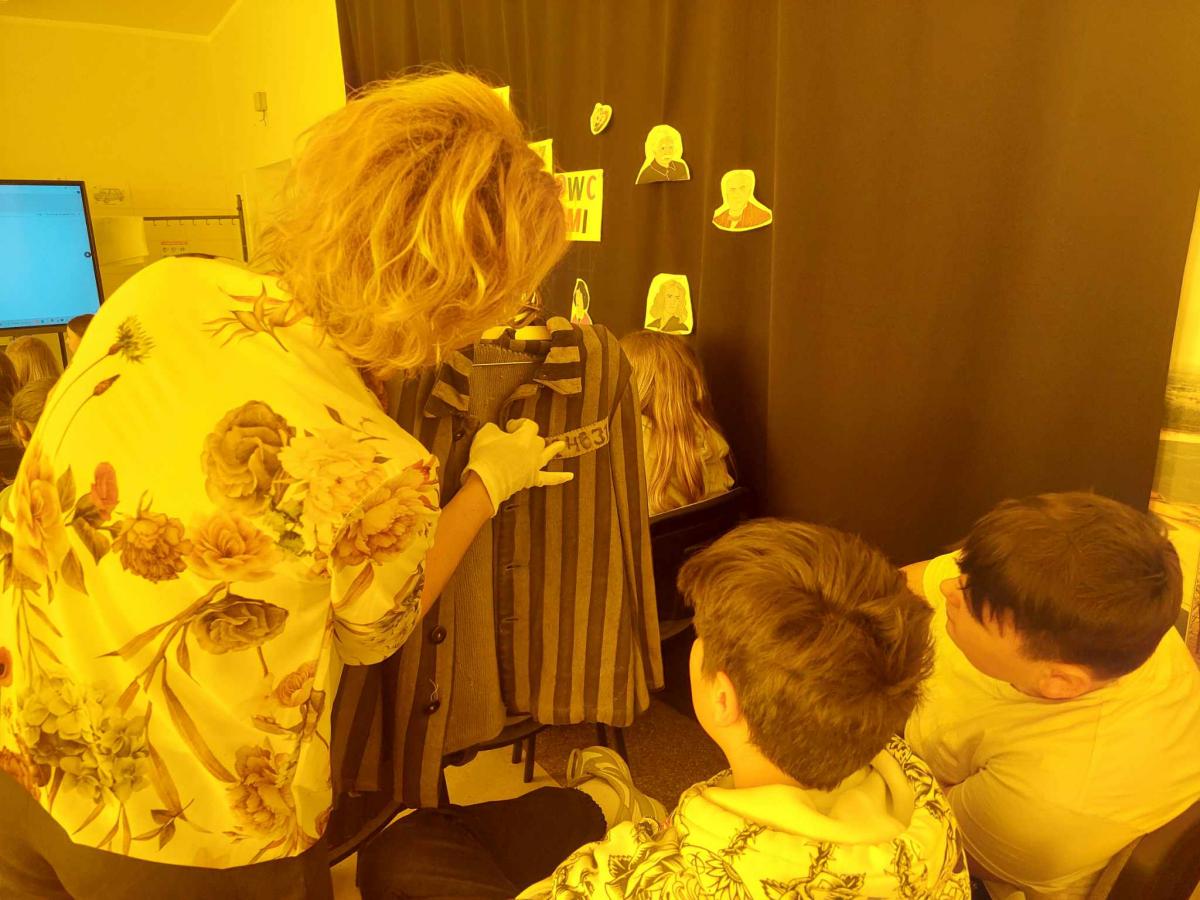 Później poznali życie obozowe poprzez oswojenie się z więźniarskim strojem i obuwiem. Dowiedzieli się także jakie znaczenie miała miska, kubek, łyżka.