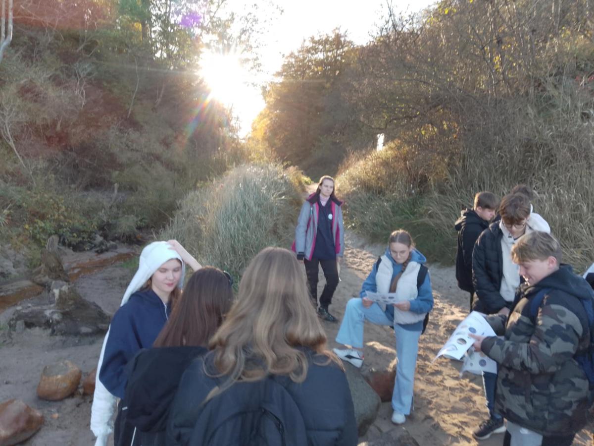 Zatem gra terenowa, w której wykazaliśmy się dużymi umiejętnościami praktycznymi. Wszyscy uzyskali bardzo dobre wyniki i nikt się nie zgubił! Po południu spacer wyjątkowym wąwozem w Chłapowie i kolejny pakiet edukacyjny o florze i faunie nadmorskiej.