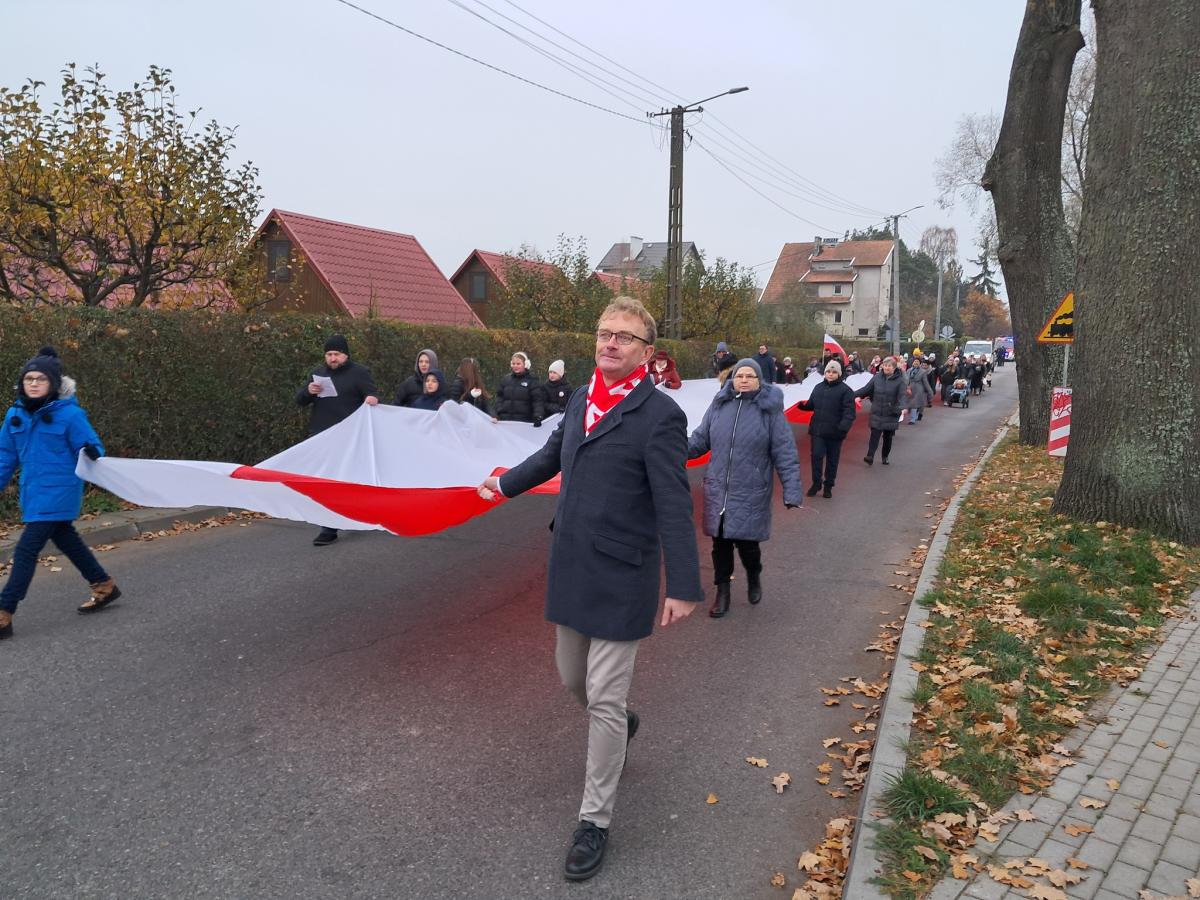 Nasza flaga wspaniale prezentowała się niesiona z szacunkiem przez dzieci i dorosłych.
