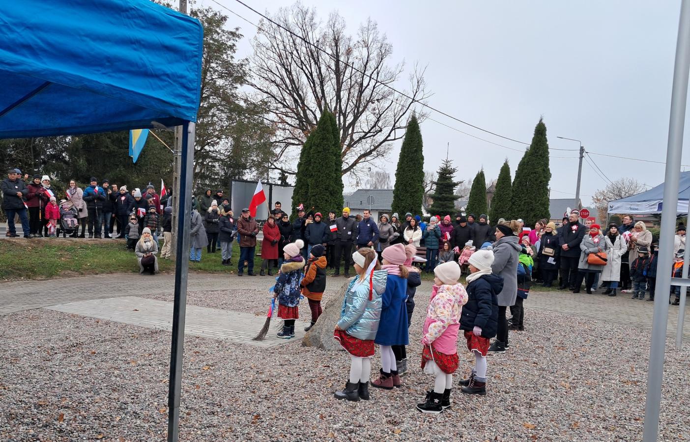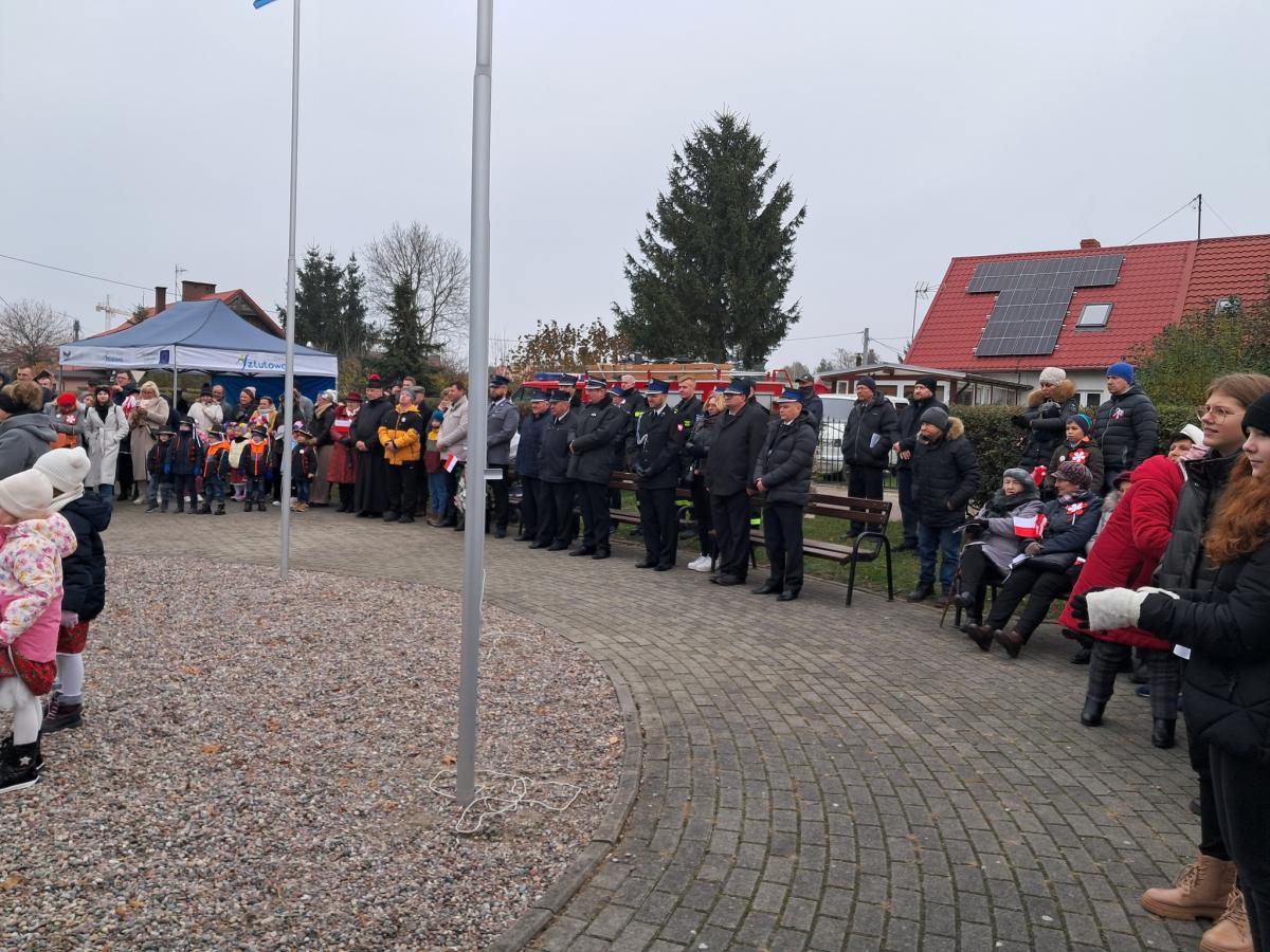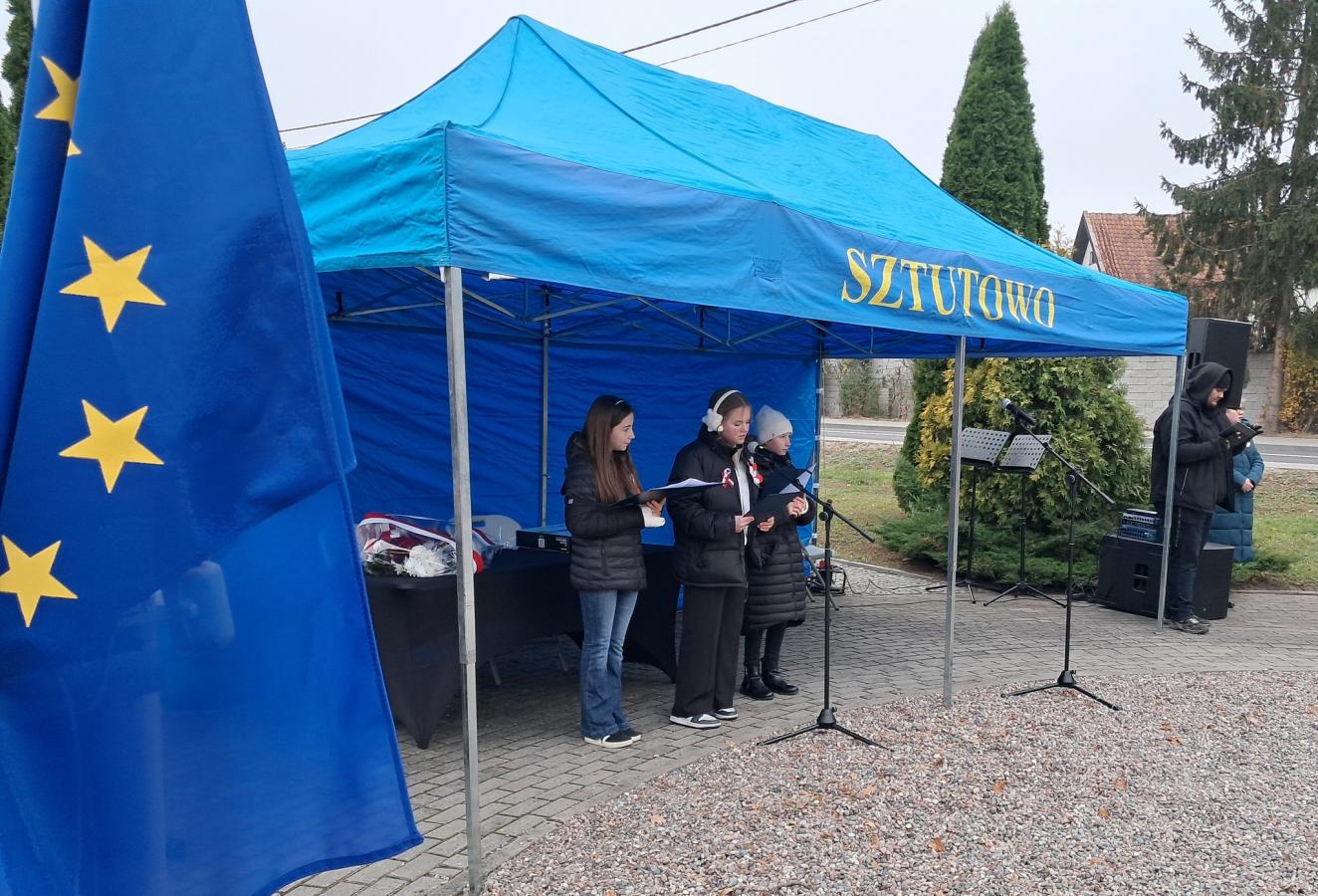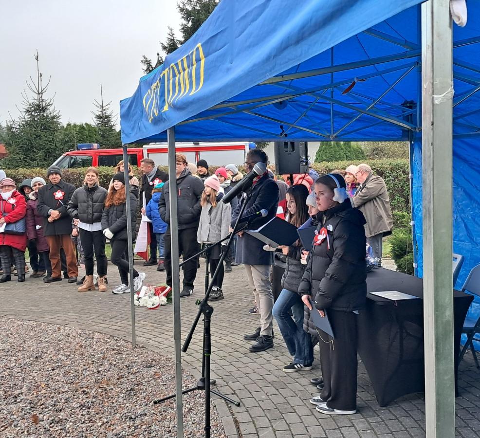 Na Skwerze 100-lecia Odzyskania Niepodległości dzielne lektorki z klas VI poprowadziły część oficjalną. Piękne przemówienia o wspólnocie przekazał zebranym Wójt Gminy Sztutowo. Przewodniczący Rady Gminy mówił o roli rodziny, nauczycieli i wiary w odzyskaniu niepodległości.