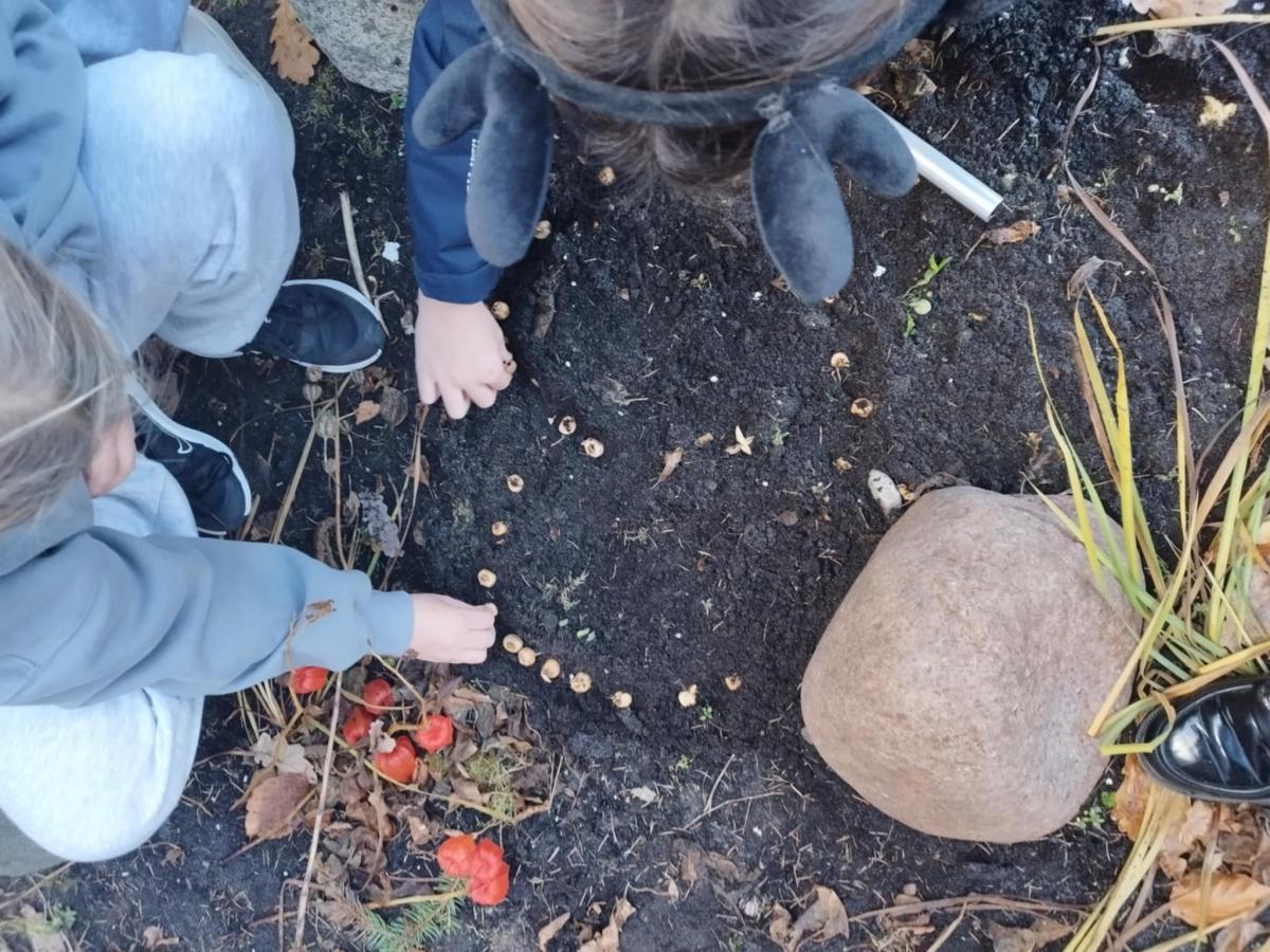 Klasa Vb wzięła udział w akcji Krokus organizowanej przez Żydowskie Muzeum Galicja w Krakowie, sadząc cebulki krokusów w kształcie serca.